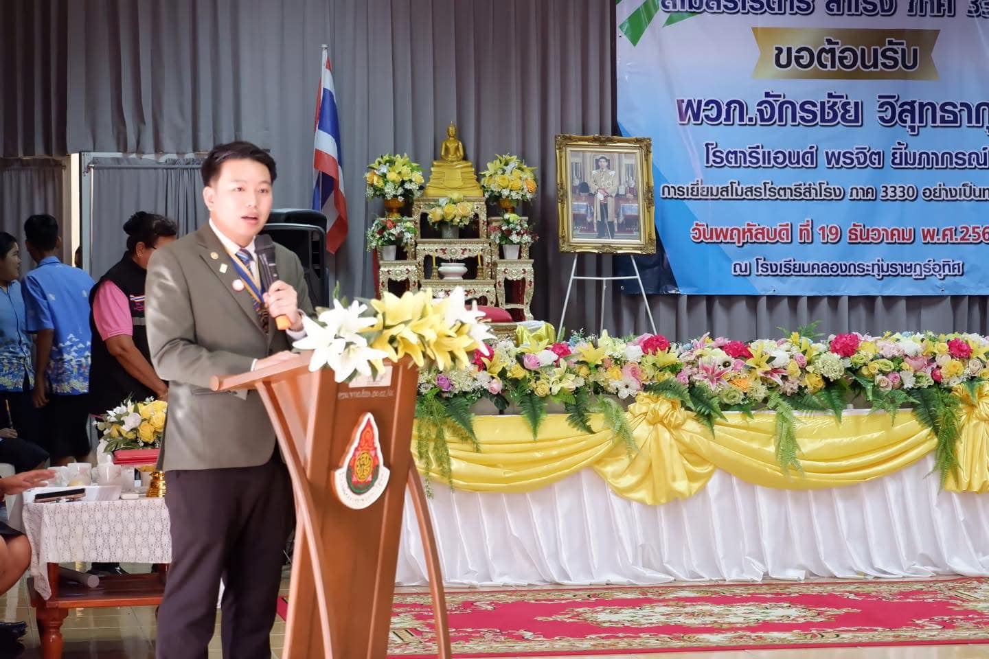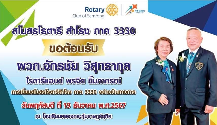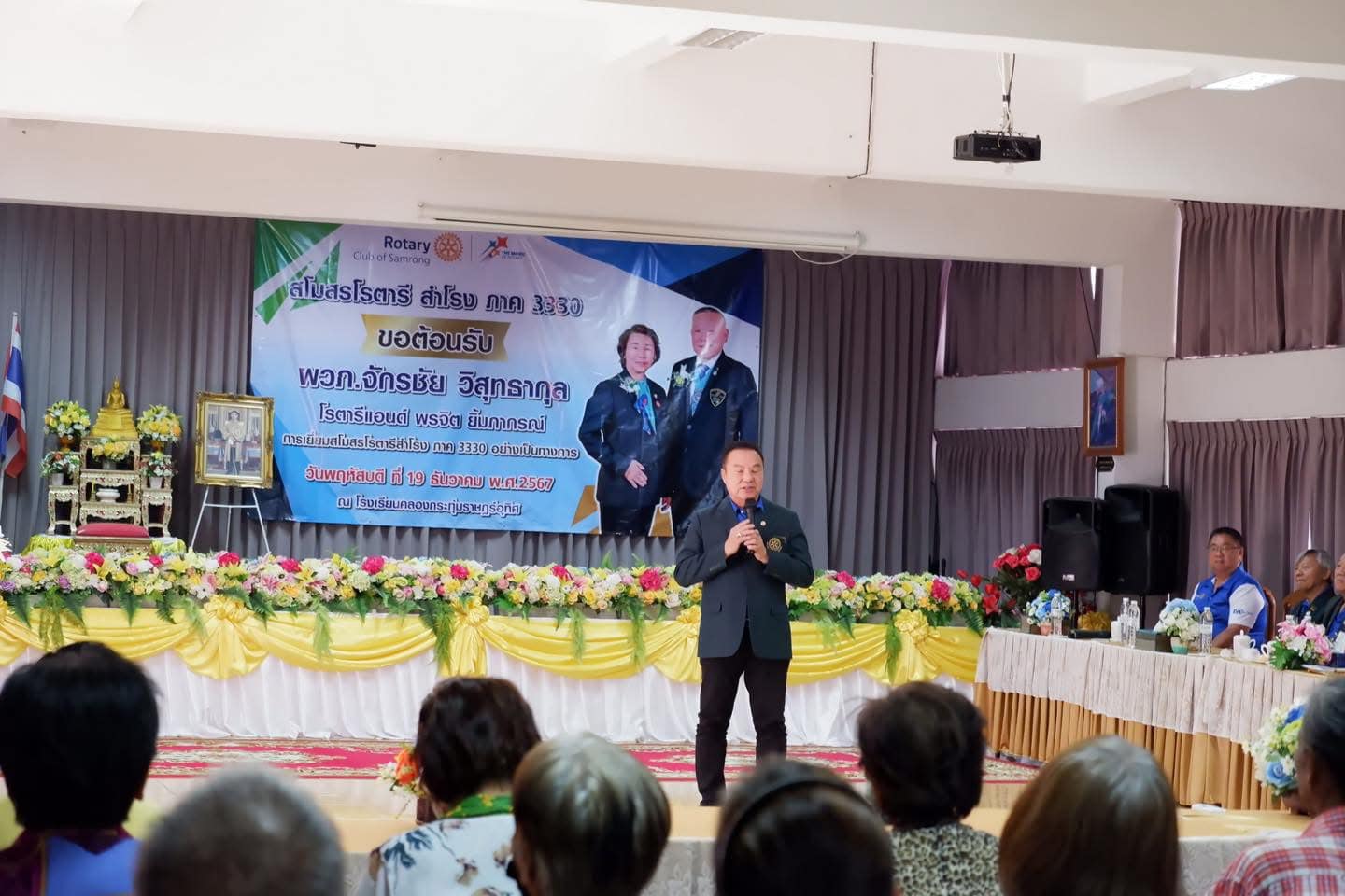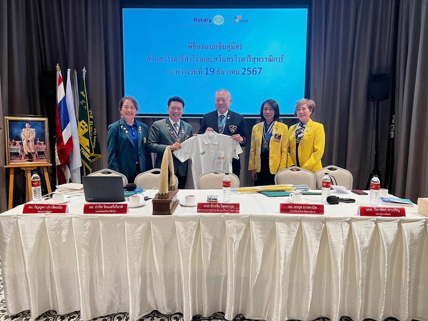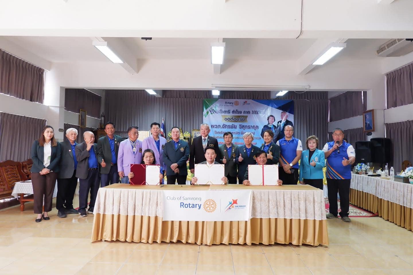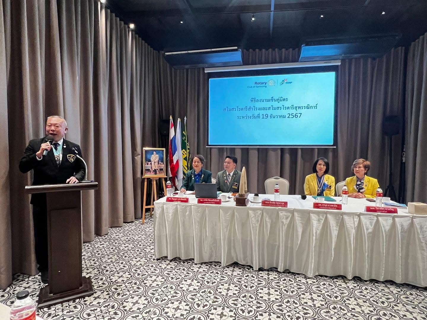 ช่วงที่สาม ร่วมพิธีลงนามคู่มิตรระหว่างสโมสรโรตารีสำโรงและสโมสรโรตารีสุพรรณิการ์ และร่วมประชุมนายกและกรรมการบริหารสโมสรฯ เพื่อรับฟังข้อมูลต่างๆ ของสโมสรฯ พร้อมให้คำชี้แนะ ในการนำไปปรับใช้ให้บรรลุตามวัตถุประสงค์ของประธานโรตารีสากล ปีโรตารี 2567-2568 ซึ่งมี ผชภ.ดร.อัมพรรณ์ กล้าหาญ ผู้ช่วยผู้ว่าการภาค 3330 พื้นที่ 22 ปีโรตารี 2567-2568 และ นย.ปวริศ รัตนเสรีเกียรติ นายกสโมสรโรตารีสำโรง พื้นที่ 22 ปีโรตารี 2567-2568 พร้อมสมาชิกสโมสรฯ คณะครู นักเรียนให้การต้อนรับ ณ ห้องประชุมโรงเรียนคลองกระทุ่มราษฎร์อุทิศ