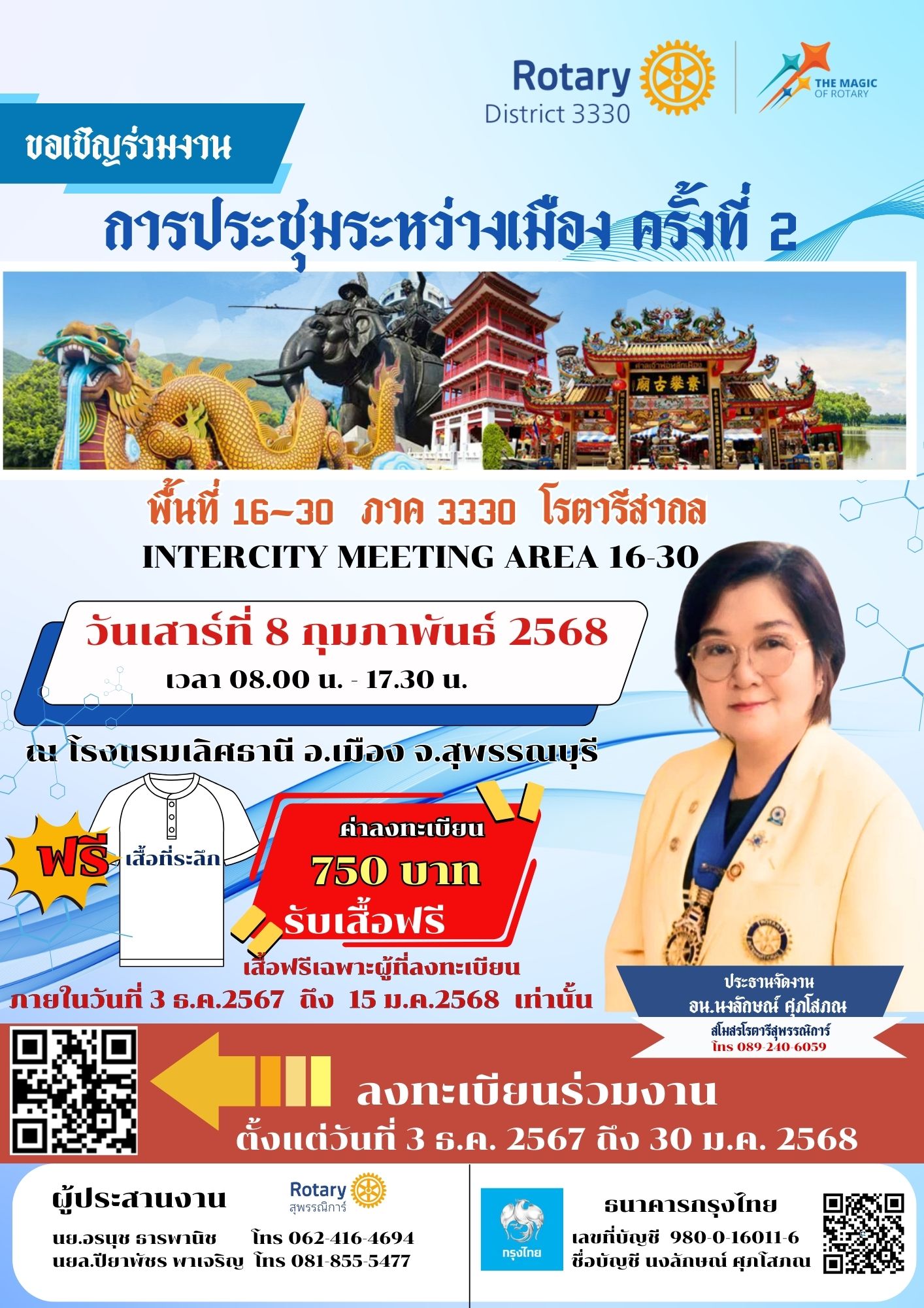 การประชุมระหว่างเมือง ครั้งที่ 2 INTERCITY MEETING AREA 16-30 ภาค 3330 ณ โรงแรมเลิศธานี จ.สุพรรณบุรี