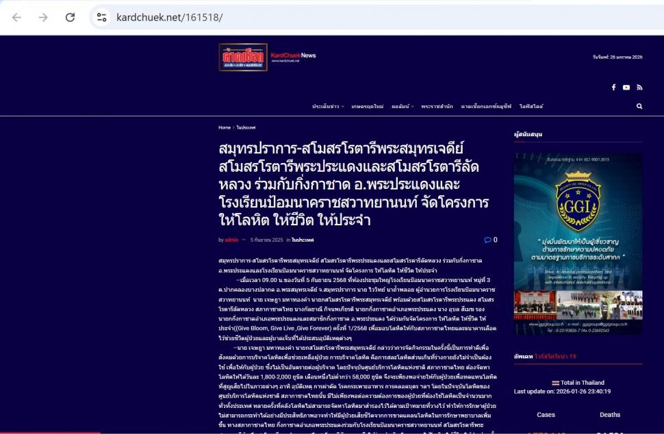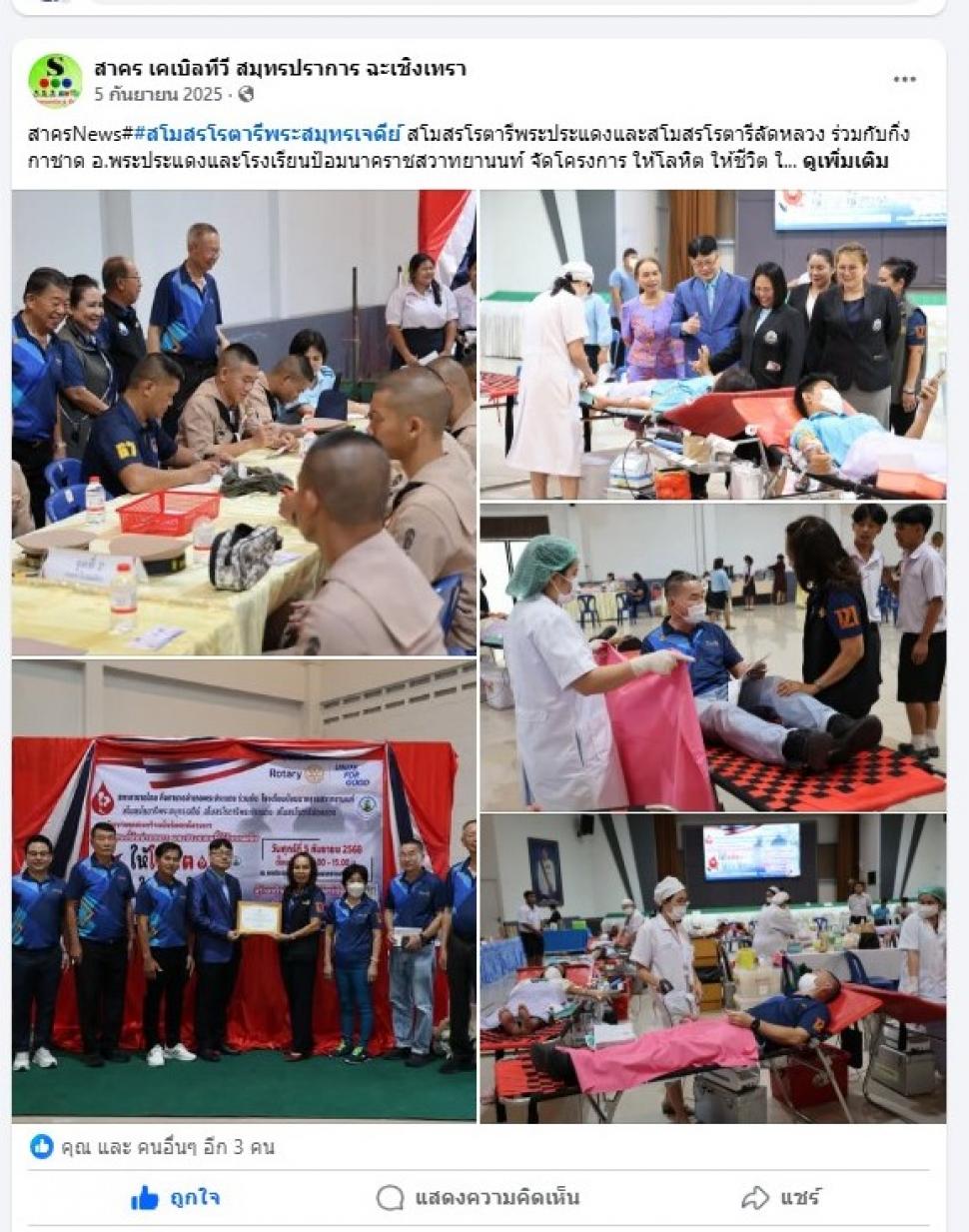 ร่วมกับสภากาชาดไทย, กิ่งกาชาดอำเภอพระประแดง และโรงเรียนป้อมนาคราชสวาทยานนท์