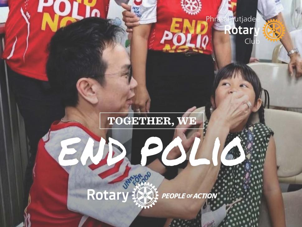 โดยร่วมกัน หยอดและฉีดวัคซีนป้องกันโรคโปลิโอให้แก่เด็ก ๆ เพื่อสร้างภูมิคุ้มกันและตระหนักถึงความสำคัญของการป้องกันโรคนี้ ซึ่งเป็นหนึ่งในภารกิจสำคัญของโรตารีทั่วโลกในการ “ร่วมกันยุติโปลิโอให้หมดสิ้นจากโลก”