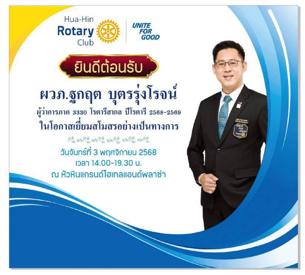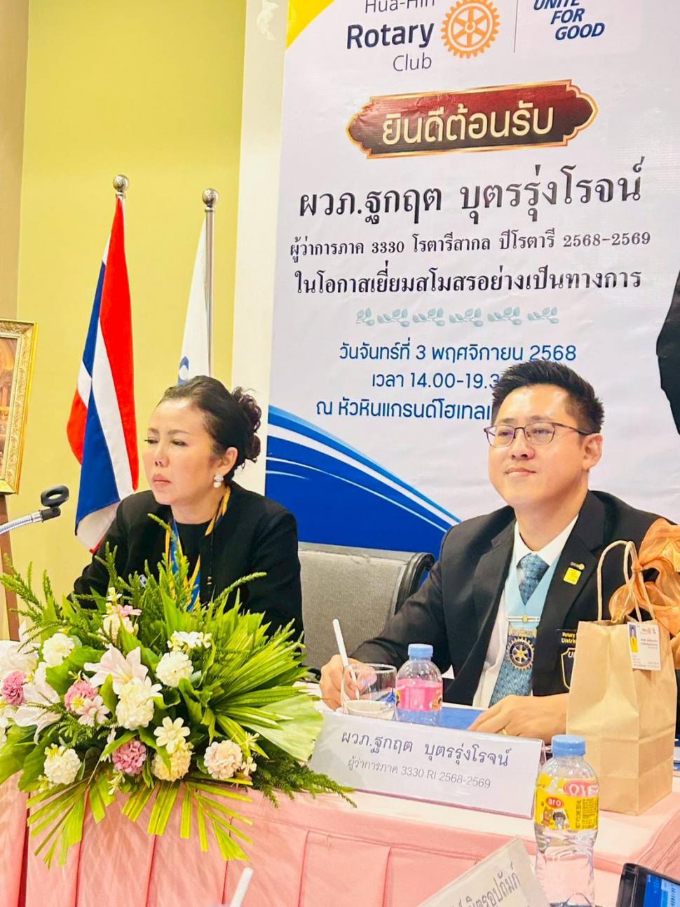 เวลา 19.00น.ประชุมปกติประจำสัปดาห์ #9 สนเทศโรตารีโดย ผวภ.ฐกฤต บุตรีรุ่งโรจน์ เรื่อง การเพิ่มสมาชิกและรักษาสมาชิก และการบริจาคเพื่อนำไปสู่การทำโครงการใหญ่ระดับโลกให้แก่ท้องถิ่นเมืองหัวหินมีคณะนักเรียนและครูที่ปรึกษาสโมสรอินเทอร์แรคท์เข้าร่วมประชุมเพื่อแจ้งข่าวการอบรมผู้นำไลล่า การเยี่ยมของผู้ว่าการภาคอย่างเป็นทางการครั้งนี้ทำให้โรแทเรียนทุกท่านได้รับข้อมูลข่าวสารจากสโมสรโรตารีทั่วโลกโดยการแบ่งปันเรื่องราวจากผู้ว่าการภาค 3330 RI