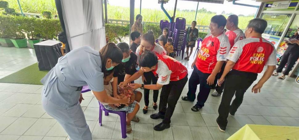 สโมสรโรตารีกำแพงแสน โดย นย.นพดล นาคมี พร้อมด้วยสมาชิกสโมสรโรตารีกำแพงแสน ร่วมรณรงค์หยอดวัคซีนป้องกันโรคโปลิโอ ณ โรงพยาบาลส่งเสริมสุขภาพตำบลวังน้ำเขียว อำเภอกำแพงแสน จังหวัดนครปฐม เมื่อวันที่ 10 พฤศจิกายน 2568