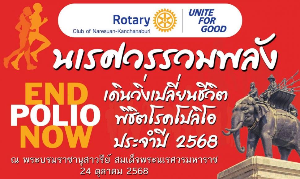 ผชภ.พรรณเพ็ญ ไพบูลย์เกษม ผู้ช่วยผู้ว่าการภาคพื้นที่ 27 เป็นประธานกล่าวเปิดงานวันโปลีโอโลก 24 ตุลาคม 2568 ณ บริเวณพระบรมราชาอนุสาวรีย์ สมเด็จพระนเรศวรมหาราช ตำบลดอนเจดีย์ อำเภอพนมทวน จังหวัดกาญจนบุรี สโมสรโรตารีนเรศวร-กาญจนบุรี เป็นเจ้าภาพโดยได้รับเกียรติจาก สโมสรโรตารีมณีกาญจน์ สโมสรโรตารีกาญจนบุรี สโมสรโรตารีท่าเรือ-กาญจนบุรี สโมสรโรตารีลูกแก-กาญจนบุรี สโมสรโรตารีกรับใหญ่ สโมสรโรตารีบ้านโป่ง สโมสรโรตารีสนามจันทร์ และสโมสรโรตารีโพธาราม มาร่วมกิจกรรม กับผู้นำชุมชนในอำเภอพนมทวนและใกล้เคียง สมาชิกอสม.โรงพยาบาลส่งเสริมสุขภาพตำบลดอนเจดีย์ สมาชิกอสม.โรงพยาบาลส่งเสริมสุขภาพตำบลท่าตะคร้อ ชุมชนโรตารีบ้านถ้ำมังกร ชุมชนโรตารีดงไม้แดง และสมาชิกก่อตั้งชุมชนโรตารีบ้านตลาดสำโรง ชุมชนโรตารีที่อยู่ในความอุปถัมภ์ ของสโมสรโรตรีนเรศวร-กาญจนบุรีทั้ง 3 แห่ง มาร่วมกิจกรรมด้วยความประทับใจ