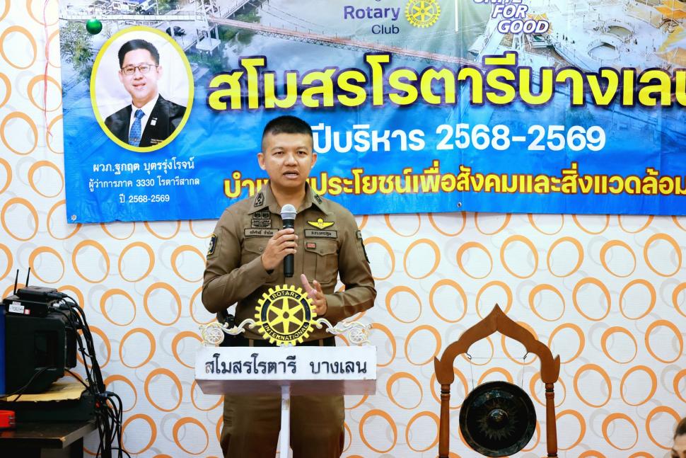 สโมสรโรตารีบางเลนจัดประชุมประจำสัปดาห์ วันจันทร์ที่ 10 พฤศจิกายน เวลา 18.00 น. สโมสรโรตารีบางเลนจัดประชุมประจำสัปดาห์ โดยได้รับเกียรติจาก พ.ต.อ. อภิศักดิ์ กำเนิด ผกก.สภ.บางเลน มาเป็นองค์สนเทศในหัวข้อ “โครงการถนนปลอดภัย” (View:312)