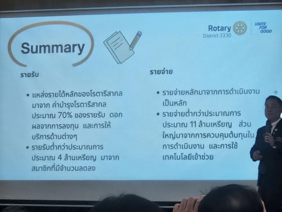 ส่งท้าย โรแทเรียนทุกคน ได้เข้าถึงความมุ่งมั่นแห่งการตั้งเป้าหมายในการบริจาค เข้ากองทุน Paul Harris Fellow ที่ถือว่าทุกคนสามารถมีส่วนร่วม และการบริจาคอย่างต่อเนื่องส่งผลยั่งยืนกลับคือแก่ทั้งโรตารีสากล และสโมสรต้นสังกัด