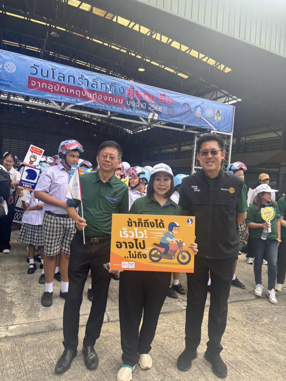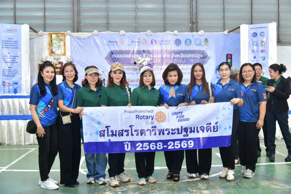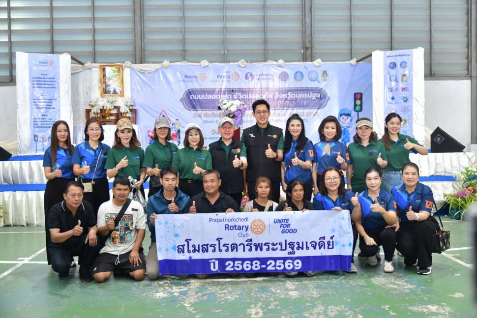 16 พย.68 สโมสรโรตารีพระปฐมเจดีย์ สโมสรโรตารีในจังหวัดนครปฐมทั้งหมด จัดโครงการ "ถนนปลอดเหตุ ชีวิตปลอดภัย" จังหวัดนครปฐม(SAFE ROADS SAVE LIVES) (SRSL) วันรำลึกถึงผู้สูญเสียจากอุบัติเหตุทางถนน ประจำปี 2568 พร้อมมอบหมวกกันน๊อครวมทั้งภาค จำนวน 1,000,000 ใบ เด็กปลอดภัย1ล้านคน ณ หอประชุมสมาคมผู้สูงอายุ เทศบาลนครนครปฐม