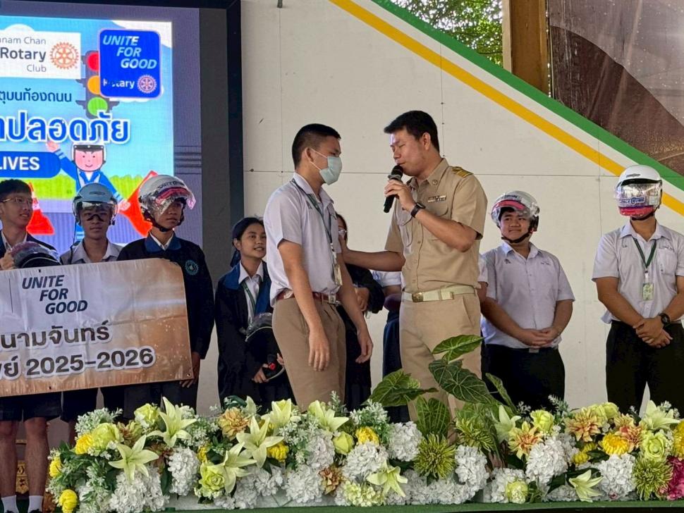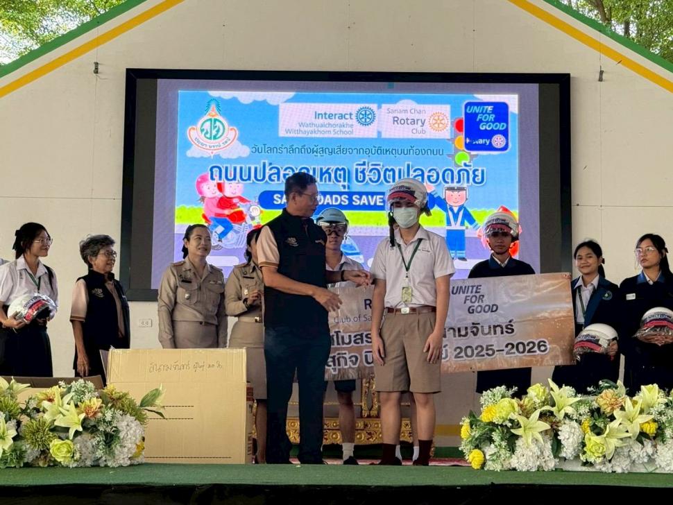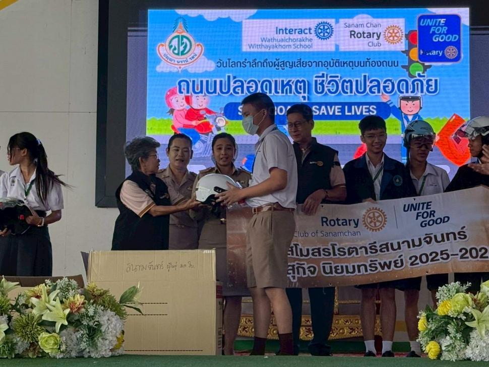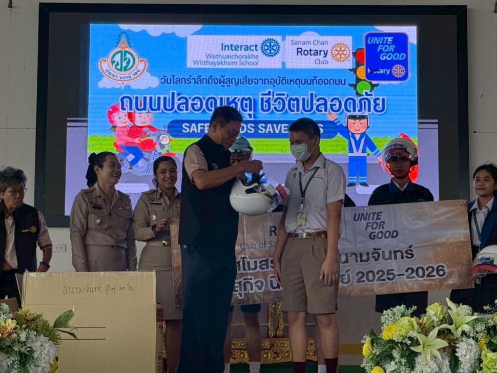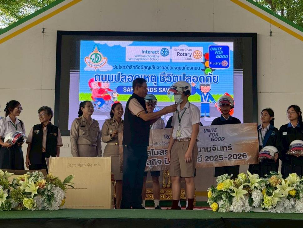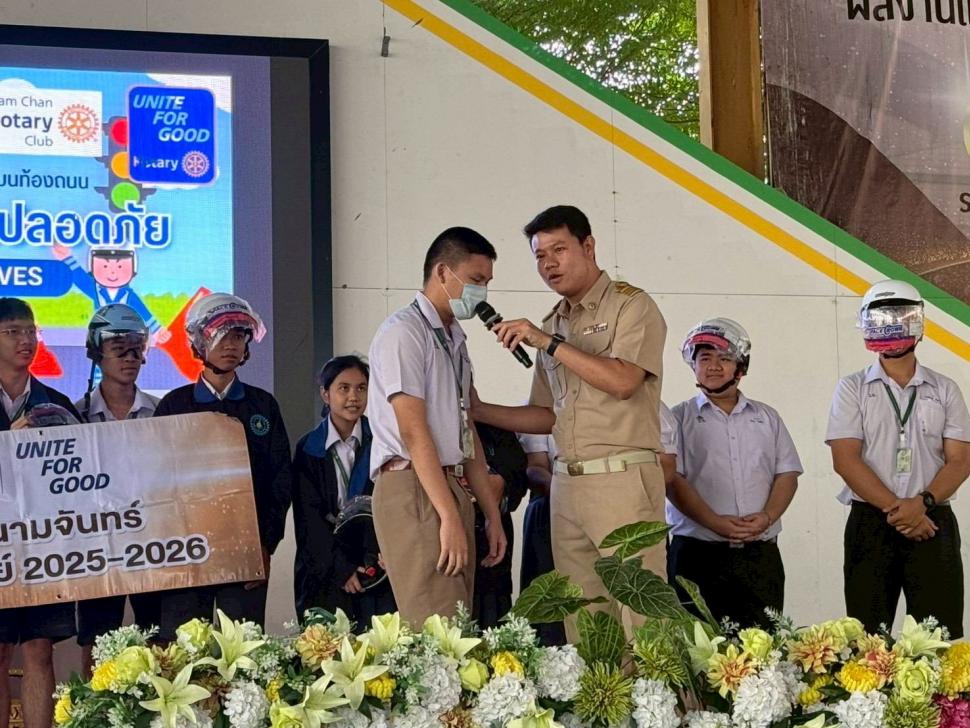วันที่ 17 พฤศจิกายน 2568 ณ โรงเรียนวัดห้วยจรเข้วิทยาคม สโมสรโรตารีสนามจันทร์ โดย นายกสุกิจ นิยมทรัพย์ และอน.อัญชลี อมรสิน ดำเนินการมอบหมวกนิรภัยแก่นักเรียนโรงเรียนวัดห้วยจรเข้วิทยาคม เพื่อส่งเสริมความปลอดภัยให้กับเยาวชน