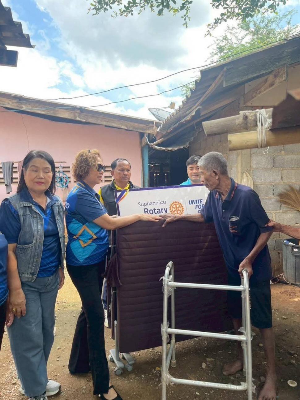 วันที่ 22 พฤศจิกายน 2568 สโมสรโรตารีสุพรรณิการ์ นำโดยนายกปียาพัชร พาเจริญ พร้อมด้วยสมาชิก เข้าเยี่ยมผู้สูงอายุ 2 สามี-ภรรยา ซึ่งมีความเป็นอยู่ลำบาก เบื้องต้นได้มอบของใช้ที่มีความจำเป็นในชีวิตประจำวัน พร้อมทั้งมอบเตียงเพื่อความสะดวกสบายในการลุกนั่งมากขึ้นด้วย ที่ ต.ห้วยขมิ้น อ.ด่านช้าง จ.สุพรรณบุรี