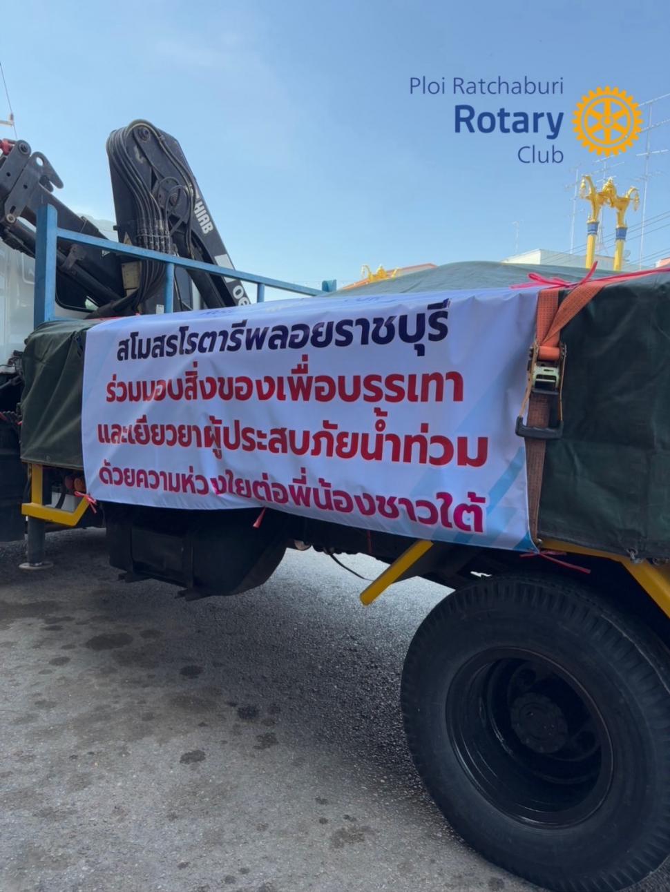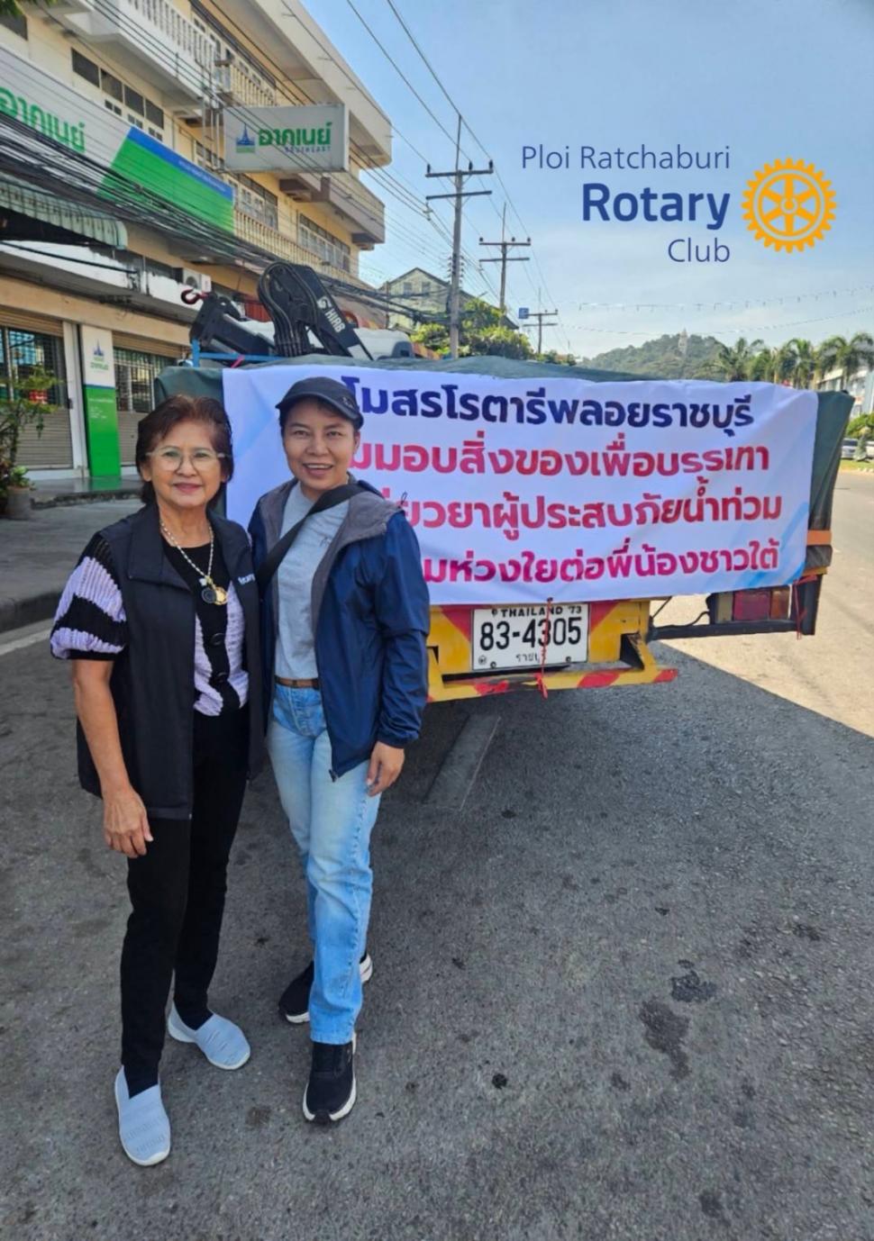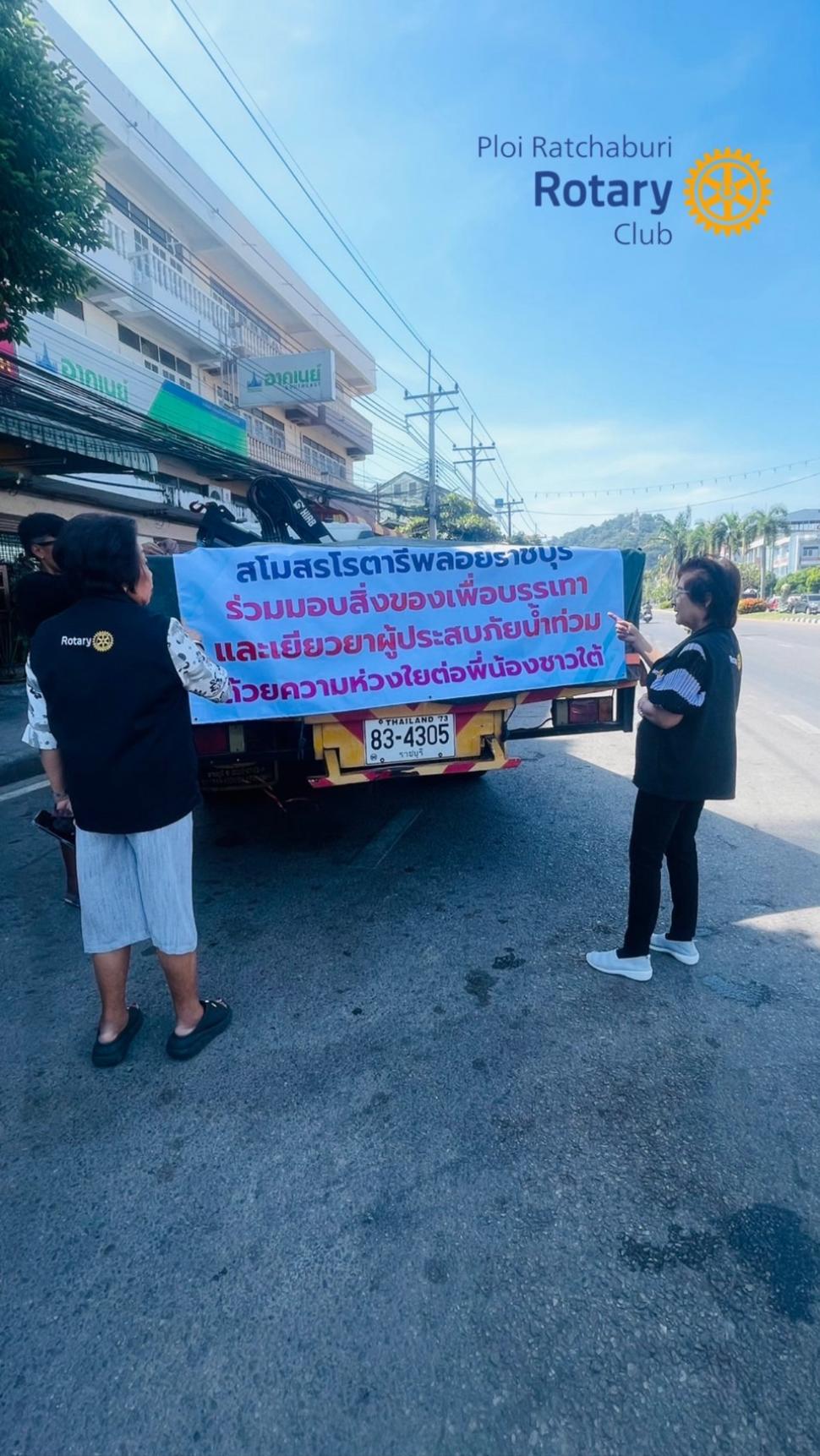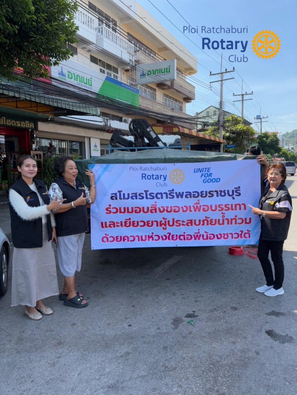 สมาชิกสโมสรโรตารีพลอยราชบุรี ร่วมกันมอบสิ่งของเพื่อบรรเทา และเยียวยาผู้ประสบภัยน้ำท่วม ด้วยความห่วงใยต่อพี่น้องชาวใต้