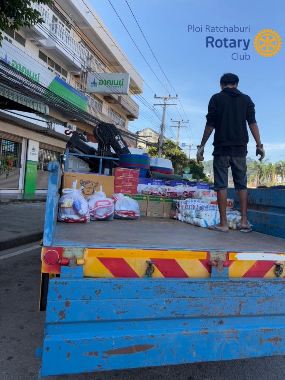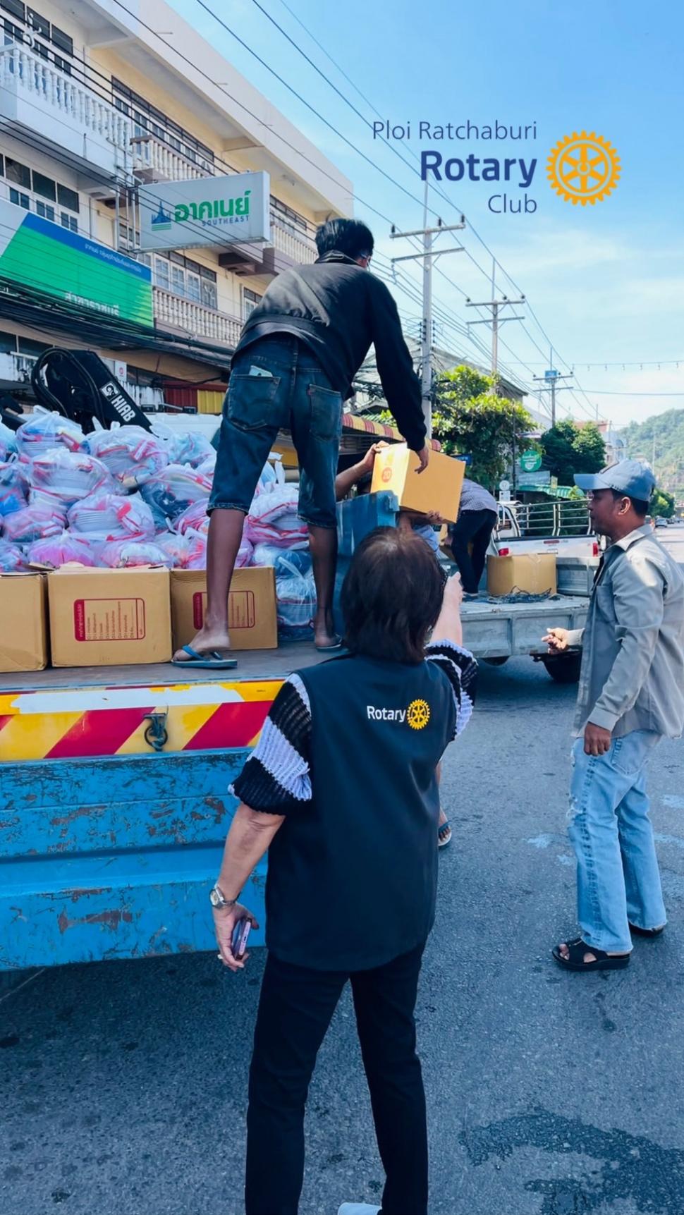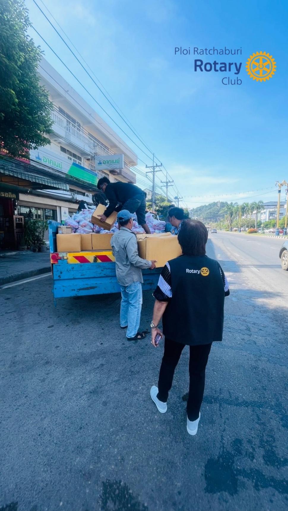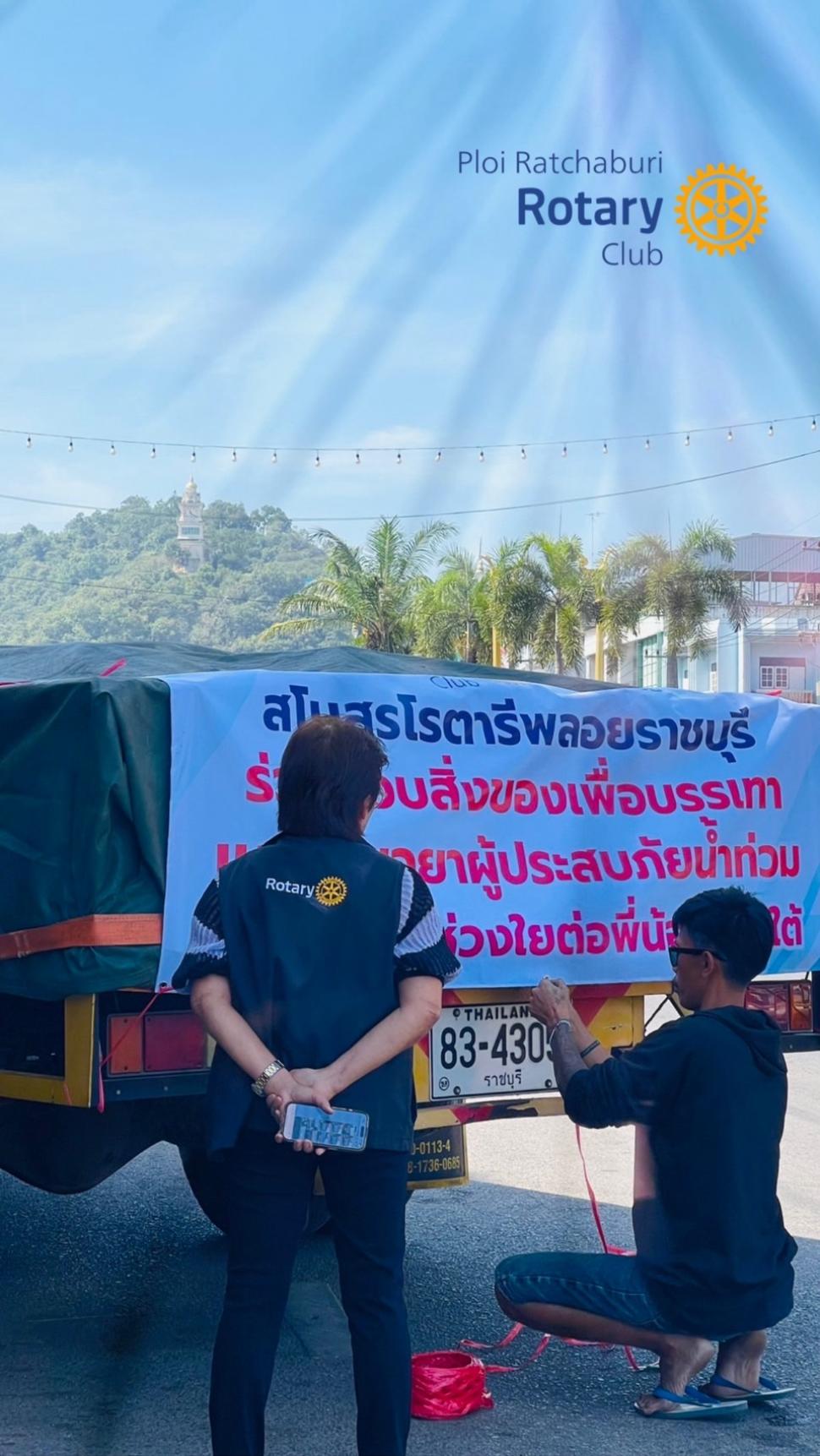 สมาชิกสโมสรโรตารีพลอยราชบุรี ร่วมกันมอบสิ่งของเพื่อบรรเทา และเยียวยาผู้ประสบภัยน้ำท่วม ด้วยความห่วงใยต่อพี่น้องชาวใต้