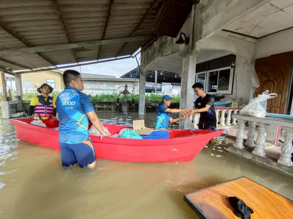 วันที่ 29 พฤศจิกายน 2568 เวลา 13:30น. ณ ชุมชนพระยาเมือง ตำบลรูสะมิแล อำเภอเมือง จังหวัดปัตตานี นายกมล ผ่องใส นายกสโมสรโรตารีปัตตานี และสมาชิกสโมสรโรตารีปัตตานี ร่วมทำกิจกรรมบำเพ็ญประโยชน์กับกองอำนวยการร่วม ปั๊มน้ำมัน ปตท.นาเกลือ (ชมรมฉลามตานี) แจกข้าวกล่องให้กับชาวบ้านชุมชนพระยาเมือง เพื่อบรรเทาความเดือดร้อนแก่ผู้ประสบภัยน้ำท่วมในเขตอำเภอเมืองปัตตานี ด้วยไมตรีจิตแห่งโรตารี รวมพลังเพื่อสิ่งดี ปีโรตารี 2568-2569 #RIDistrict3330 #RotaryConnectsTheWorld #AllRotaryThailand #RotaryInternational #RotaryAwareness #Rotarymembers #PeopleofAction #UNITEFORGOOD #AI