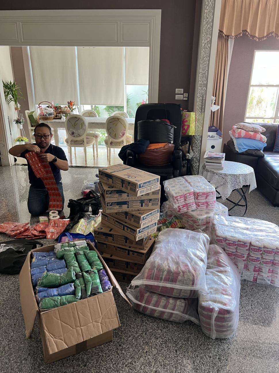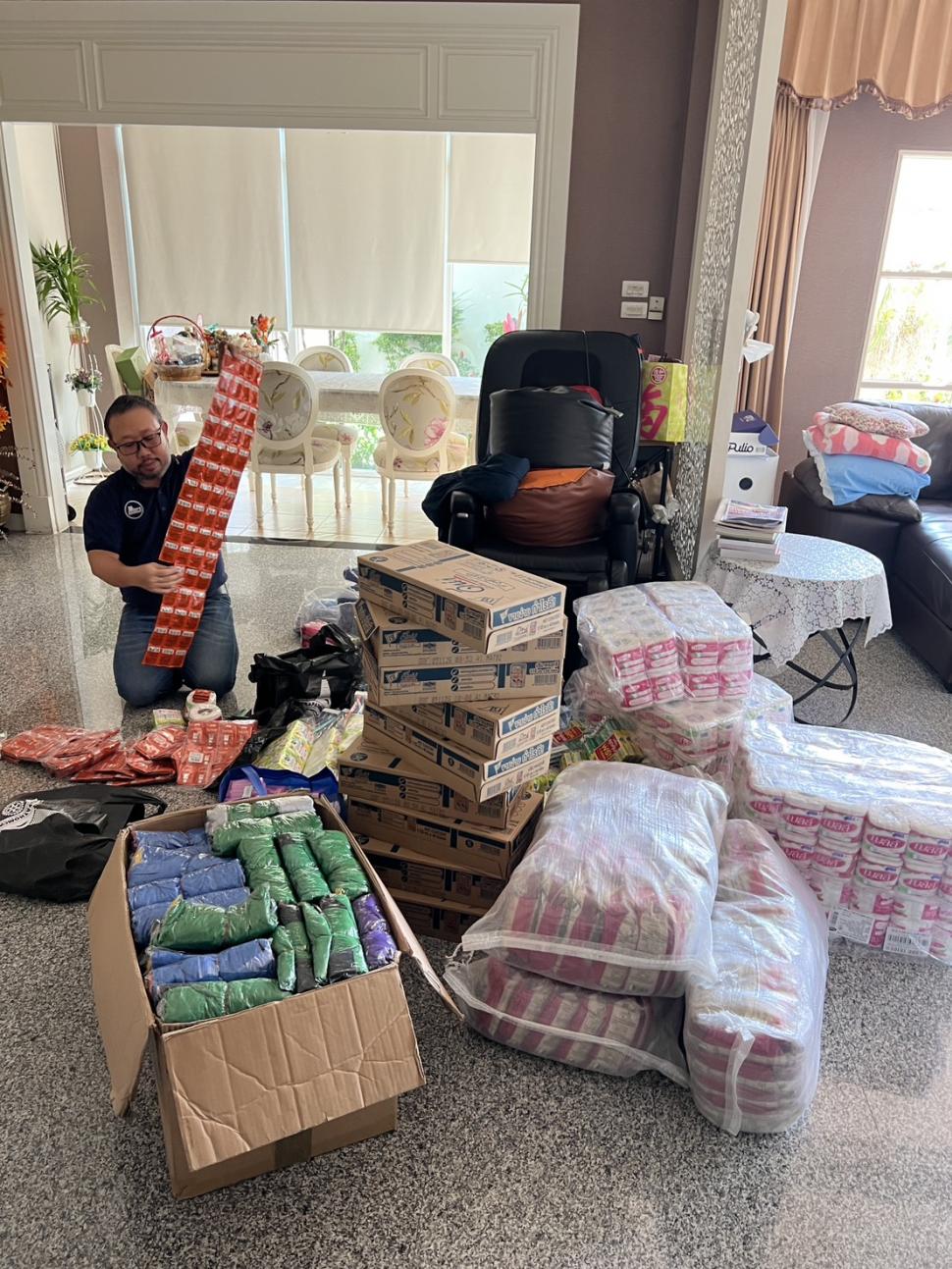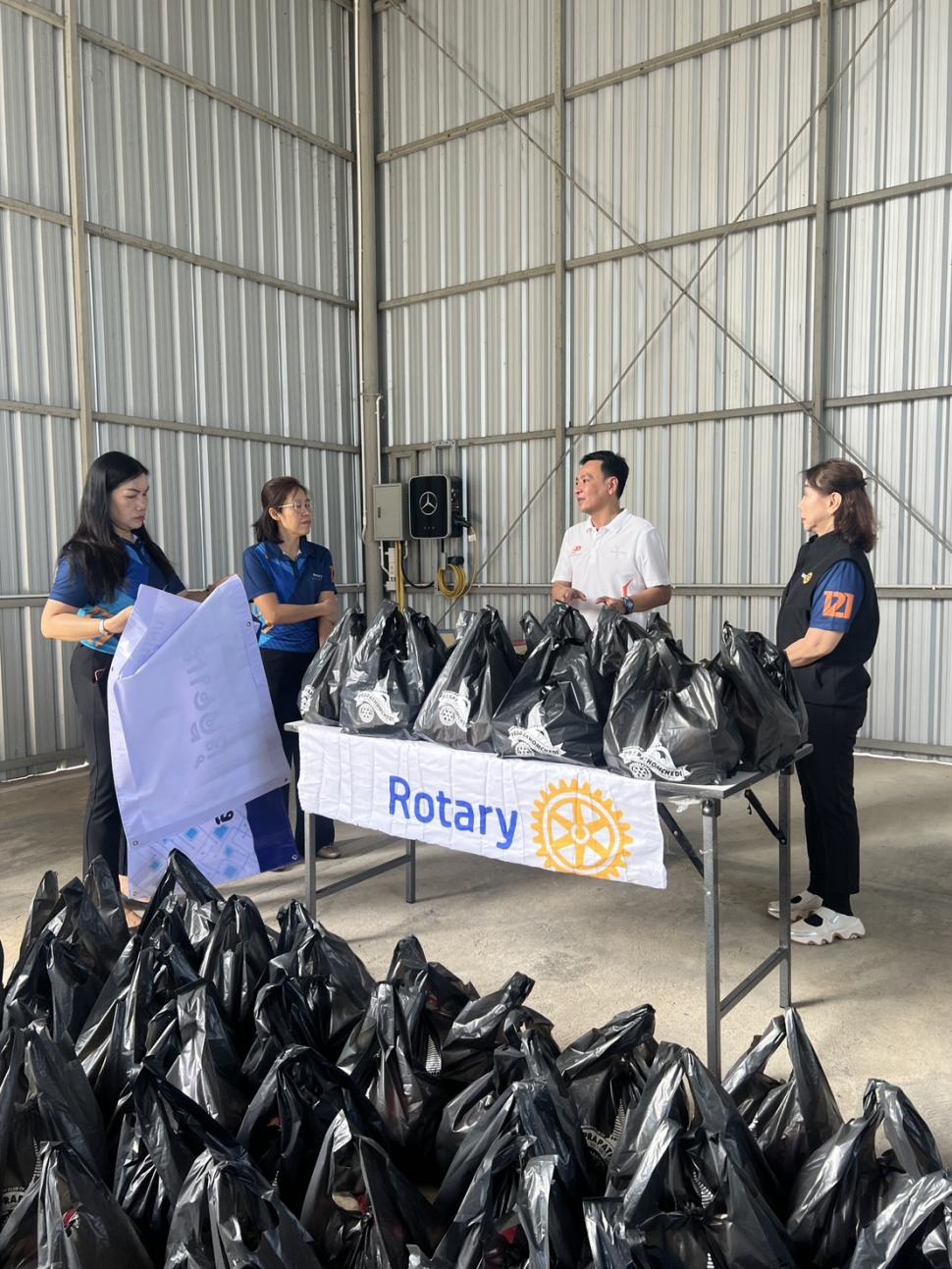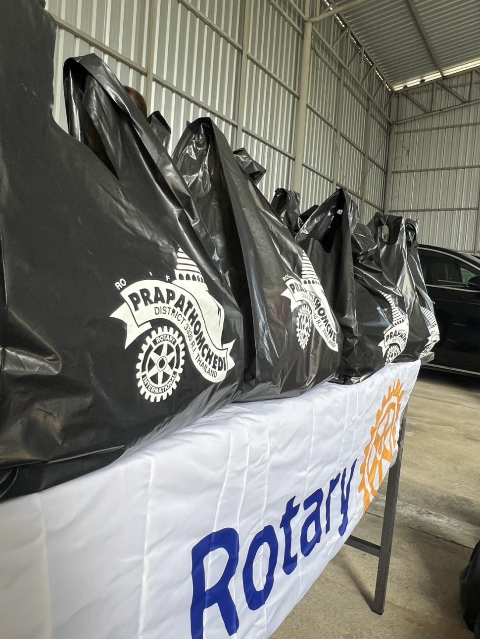 4 ธค.68 สโมสรโรตารีพระปฐมเจดีย์ โดย นย.รสนันท์ ยิ่งทวีศักดิ์ พร้อมด้วยสมาชิก นำถุงบรรจุผลิตภัณฑ์อุปโภค บริโภคต่าง ๆ มอบแต่ นย.พงษ์ พาวิทยาลาภ ประธานรุ่น 121 จำนวน 100 ชุด เพื่อมอบแก่ผู้ประสบอุทกภัยภาคใต้ ณ บริษัท เบนซ์เพชรรัตน์ จำกัด