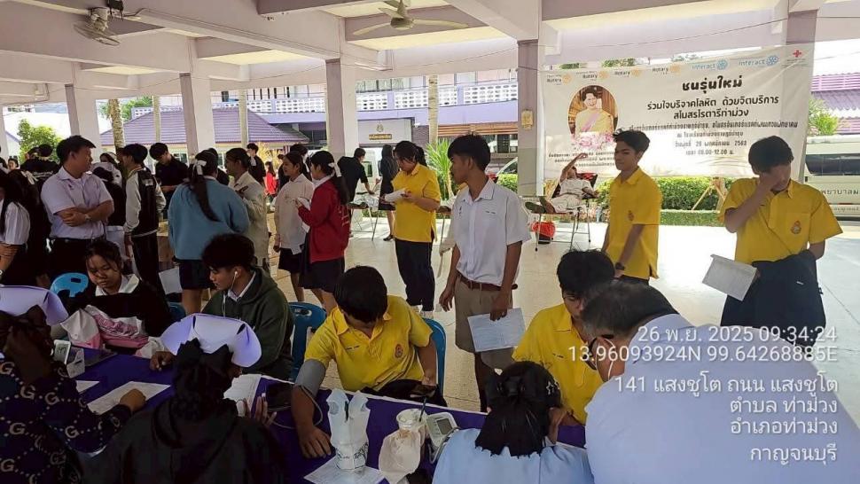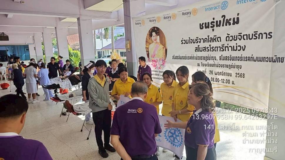 ชนรุ่นใหม่ ร่วมใจบริจาคโลหิต ด้วยจิตบริการ สโมสรอินเทอร์แร็คท์โรงเรียนท่าม่วงราษฎร์บำรุงและสโมสรอินเทอร์แร็คท์โรงเรียนพนมทวนพิทยาคม (View:78)