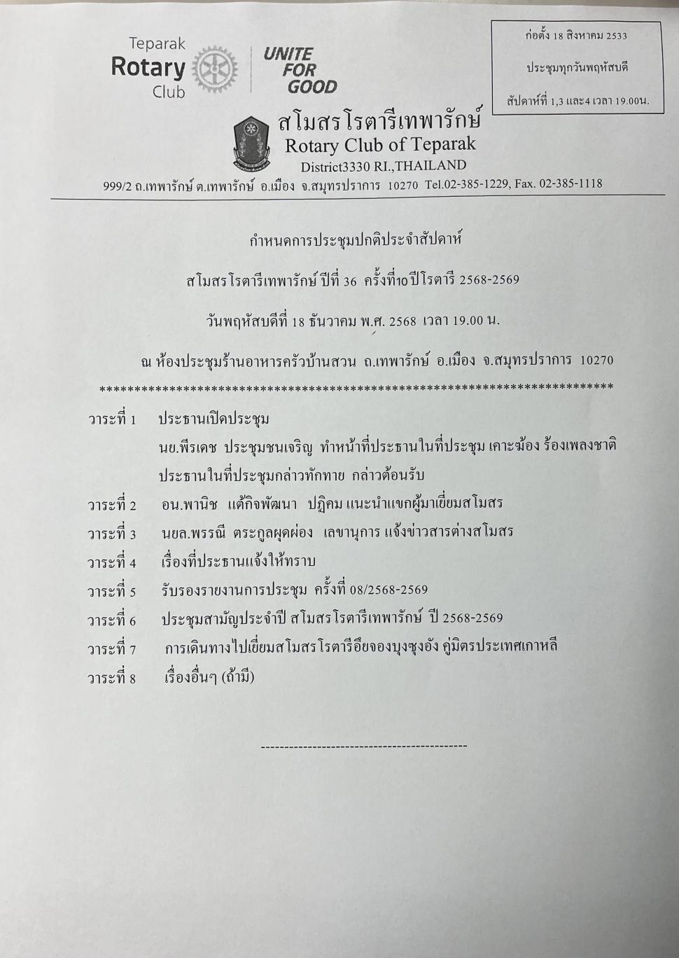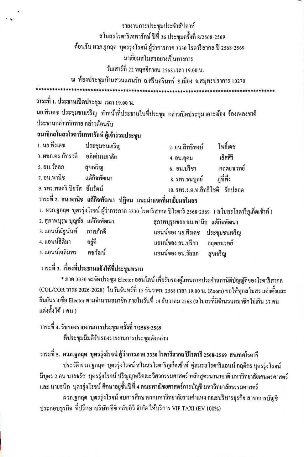 ➖ วาระที่ 6 ประชุมสามัญประจำปี 2568-2569 ของสโมสรโรตารีเทพารักษ์ ซึ่งที่ประชุมได้มีมติแก้ไขหลายหัวข้อในธรรมนูญของสโมสรฯ