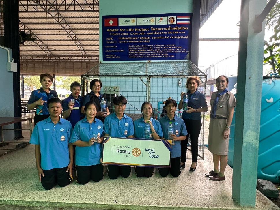 วันที่ 25 พฤศจิกายน 2568 สโมสรโรตารีสุพรรณิการ์ นำโดยนายกปียาพัชร พาเจริญ พร้อมสมาชิกฯ เข้าไปติดตามผล ของเครื่องกรองน้ำ ที่ทางสโมสรโรตารีสำโรงมอบให้ เมื่อปี2567-2568 และติดตามผล จากทางสโมสรโรตารีสุพรรณิการ์ ได้ ส่งมอบ ตัวแถบแม่เหล็กฆ่าเชื้อแบคทีเรีย ที่ช่วยฆ่าเชื้อโรคที่เป็นอันตราย 5 ชนิด และช่วยลดตระกัน ป้องกันการอุดตัน ทำให้โมเลกุลของน้ำเล็กลง เพื่อให้น้ำดื่ม สะอาดและปราศจากเชื้อโรค ซึ่งเป็นการป้องกันและรักษาโรคอย่างยั่งยืน พร้อมทั้งให้ความรู้และแนะนำให้ทางโรงเรียนหมั่นช่วยกันรักษาความสะอาดเครื่องด้วย ณ.โรงเรียนศรีประจันต์"เมธีประมุข" อำเภอศรีประจันต์ จังหวัดสุพรรณบุรี
