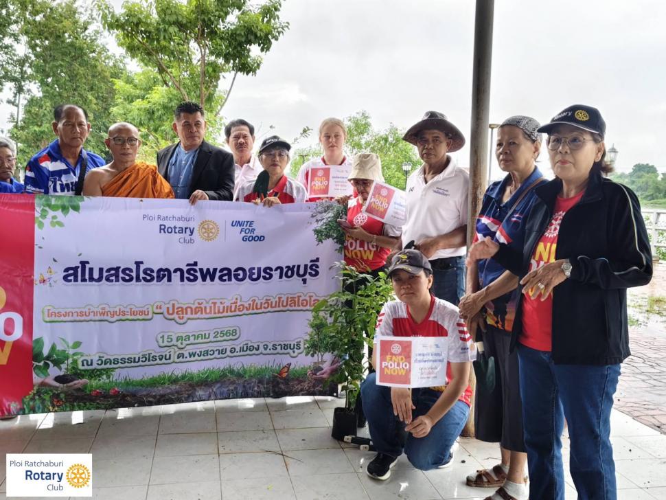 สโมสรโรตารีพลอยราชบุรีประชุมครั้งที่ 7 วันที่ 15 ตุลาคม 2568 ประชุมสัญจรทำกิจกรรมปลูกป่า 3 อย่างประโยชน์ 4 อย่าง ที่วัดธรรมวิโรจน์