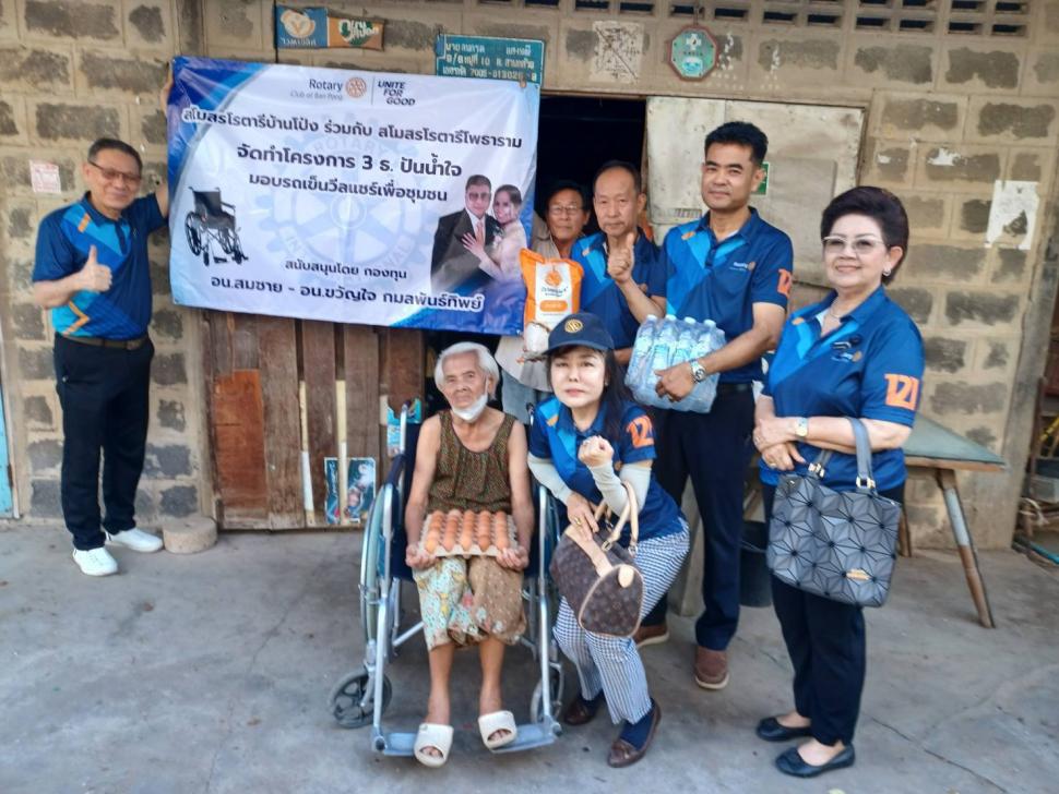 ในวันจันทร์ที่ 22 ธันวาคม 2568 เวลา 15:00 - 16:00 น. นายกชัยสิทธิ์ สามงามยาและสมาชิกสโมสรโรตารีบ้านโป่งได้มอบวีลแชร์ให้กับผู้ป่วยติดเตียงและผู้ป่วยที่ไม่สามารถเดินได้จำนวน 3 รายในชุมชนตำบลสวนกล้วย อำเภอบ้านโป่ง (View:215)