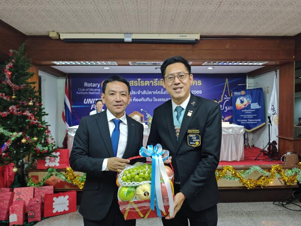 ... ผวภ.ฐกฤต บุตรรุ่งโรจน์ ผู้ว่าการภาค 3330 RI (สโมสรโรตารีภูเก็ตเซาท์) พร้อมด้วย ผชภ.ตำนาน ชุษณะท้ศน์ ผู้ช่วยผู้ว่าการภาค พื้นที่ 24 (สโมสรโรตารีนครปฐม) เยี่ยมสโมสรโรตารีเมืองปฐมนครอย่างเป็นทางการ ประจำปี 2568-2569 ในการประชุมปกติประจำสัปดาห์ ครั้งที่ 10 พร้อมทั้งกิจกรรมวันครอบครัวอวยพรวันคล้ายวันเกิดสมาชิกและคู่สมรส เมื่อวันเสาร์ที่ 27 ธันวาคม 2568 ณ ห้องทับทิม โรงแรมเวล นครปฐม