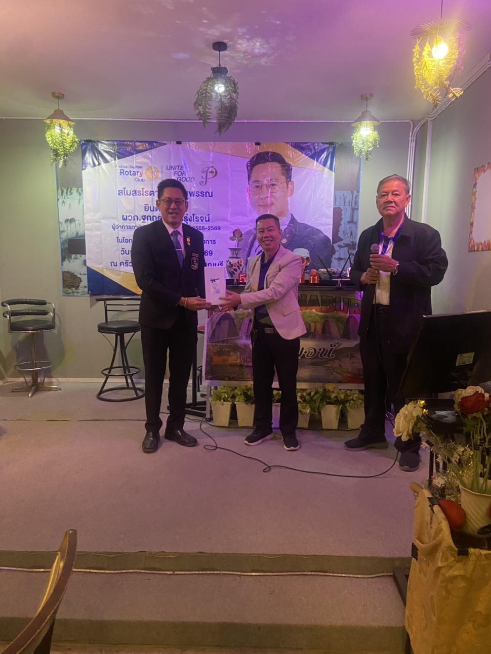 ประชุมคณะกรรมการบริหารสโมสรและสมาชิกสโมสรโรตารีเพชรสุพรรณ ปี 2568-2569 ผู้ว่าการภาค 3330 โรตารีสากล ฐกฤต บุตรรุ่งโรจน์ เยี่ยม สโมสรโรตารีเพชรสุพรรณอย่างเป็นทางการและให้เกียรติร่วมประชุมปรกติประจำเดือน 12 มกราคม 2569 เวลา 16.00 น.- 17.00 น.และร่วมกิจกรรมแชร์มิตรภาพสังสรรค์ในเวลา 18.00 น.- 20.00 น.