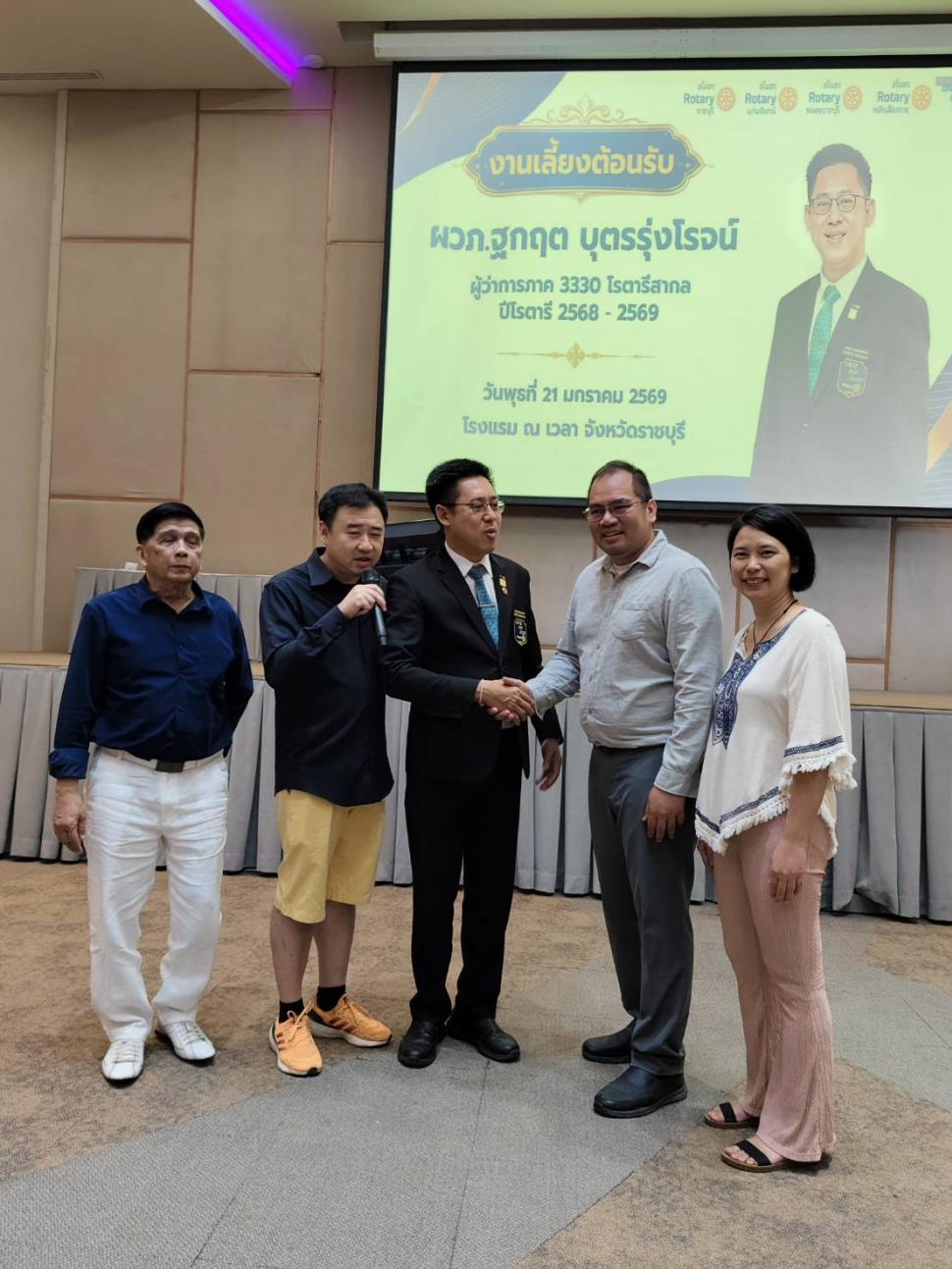 วันที่ 21 มกราคม 2569 สโมสรโรตารีราชบุรีร่วมกับสโมสรโรตารีแก่นจันทน์ สโมสรโรตารีพลอยราชบุรี และสโมสรโรตารีหลักเมืองราช จัดงานเลี้ยงต้อนรับท่านผู้ว่าการภาค ฐกฤต บุตรรุ่งโรจน์ ผู้ว่าการภาค 3330 โรตารีสากล ปี 25687-2569 และแสดงความยินดีกับ นยล.กันย์ คันโธ รับตำแหน่งนายกสโมสรโรตารีราชบุรี ปี 2569-2570 และ นย.จิราวุฒิ แซ่ตั้ง แสดงความยินดีกับ อน.ปฐมพร เจียสกุล รับตำแหน่งเป็นผู้ว่าการภาค 3330 ปี 2571-2572 ที่โรงแรม ณ เวลา บรรยากาศสนุกสนาน