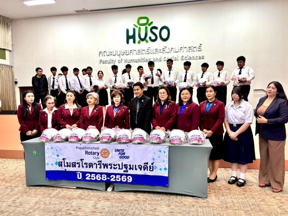 23 มค.69 สโมสรโรตารีพระปฐมเจดีย์ โดย นย.รสนันท์ ยิ่งทวีศักดิ์ พร้อมด้วยอดีตนายก, สมาชิกสโมสรฯ จัดโครงการ "Safe Roads Save Life การอบรมให้ความรู้การจับขี่ปลอดภัย ใส่ใจวินัย จราจร" ร่วมมอบหมวกกันน๊อค จำนวน 20 ใบแก่ นักศึกษาคณะมนุษยศาสตร์และสังคมศาสตร์ มหาวิทยาลัยราชภัฎนครปฐม วลา 14.30 น. ณ มหาวิทยาลัยราชภัฎนครปฐม