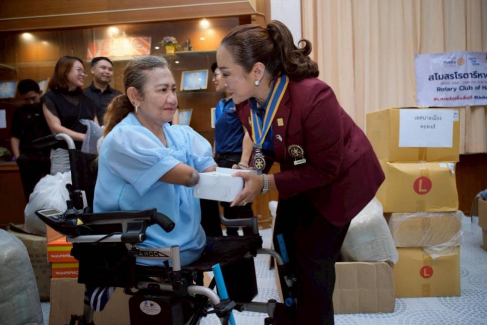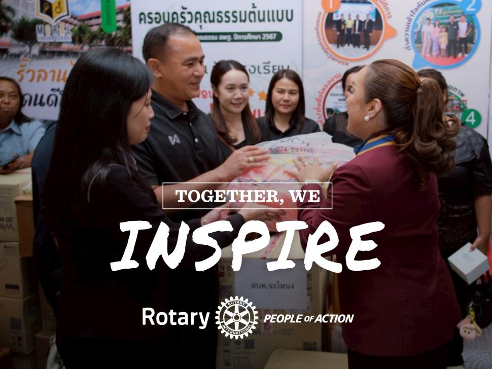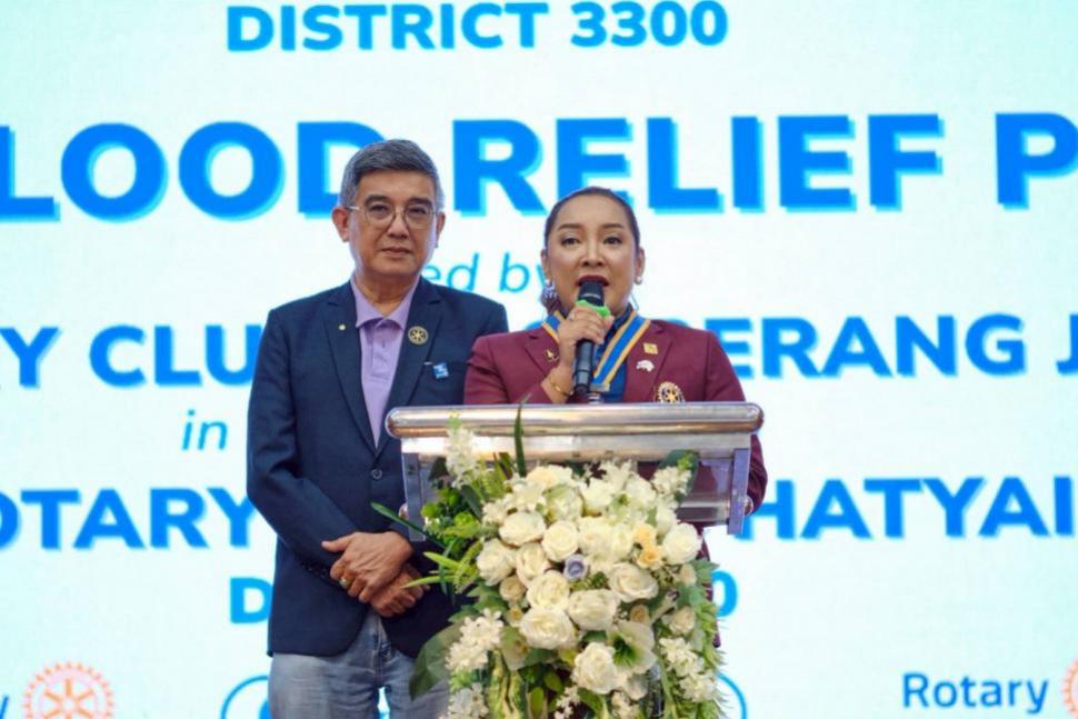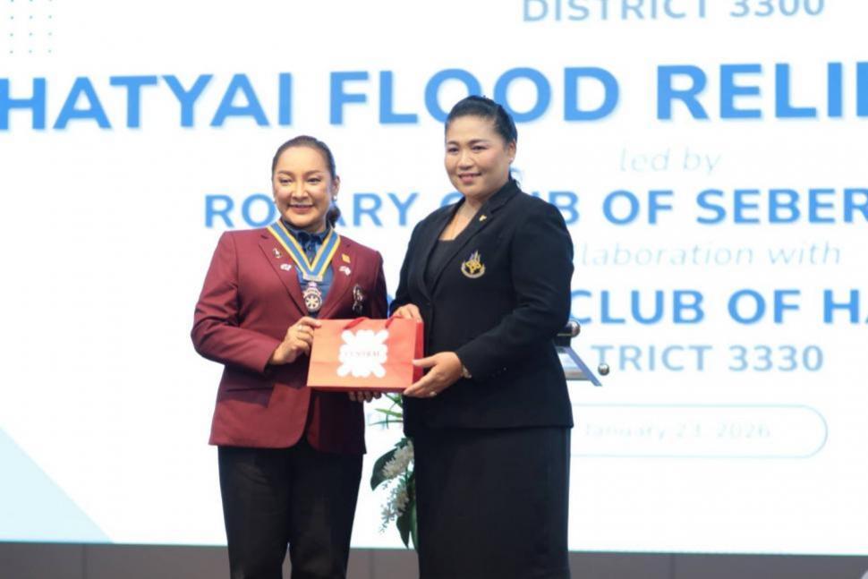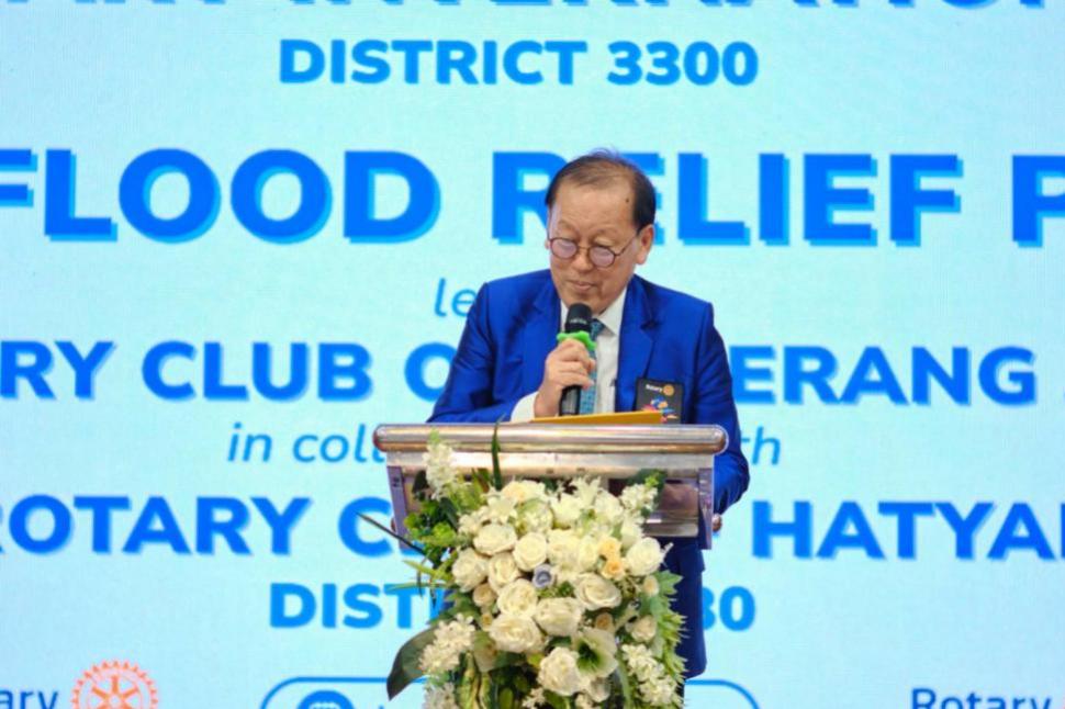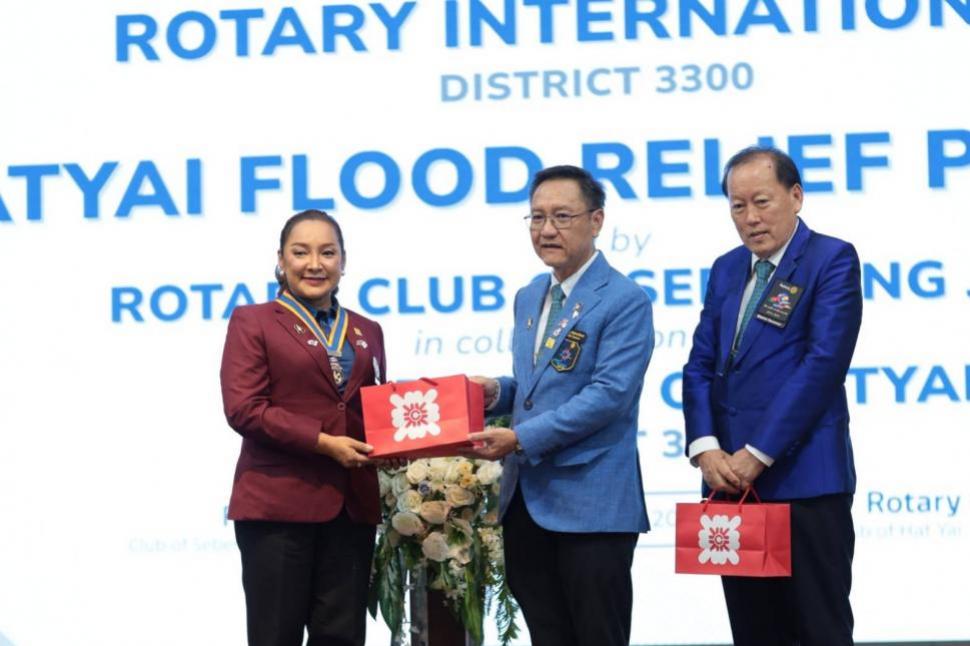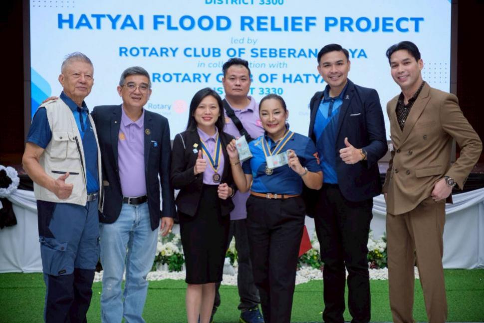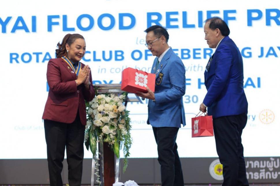 จากสถานการณ์อุทกภัยที่เกิดขึ้นในพื้นที่ อ.หาดใหญ่ จ.สงขลา ส่งผลกระทบต่อการดำรงชีวิตสุขภาพอนามัยและความเป็นอยู่ของนักเรียนและประชาชนในวงกว้าง ทำให้เกิดความจำเป็นเร่งด่วนในการให้ความช่วยเหลือด้านสิ่งของจำเป็นและอุปกรณ์ทางด้านการศึกษาและอุปกรณ์ทางการแพทย์ สโมสรโรตารีหาดใหญ่จึงได้ร่วมมือกับ สโมสรโรตารีในจังหวัดสงขลา ภาค 3330 • สโมสรโรตารีแบงค๊อกแชริตี้ ภาค 3350 • Rotary Club of Seberang Jaya, Rotary Club of Alor Setar Rotary International District 3300, Malaysia • สถานีโทรทัศน์กองทัพบก ช่อง ๕, สถานีโทรทัศน์ NBT ช่อง ๑๑, Songkhla Media, และ Cable 93 • โรงเรียนหาดใหญ่วิทยาลัยสมบูรณ์กุลกันยา/ศูนย์พัฒนาเด็กเล็ก/เทศบาล/โรงพยาบาลส่งเสริมสุขภาพในพื้นที่ อ.หาดใหญ่ จ.สงขลา ร่วมส่งมอบสิ่งของอุปกรณ์ทางด้านการศึกษาและอุปกรณ์ทางการแพทย์ เป็นการรวมพลังแห่งน้ำใจจากเครือข่ายโรตารีทั้งในและต่างประเทศ เพื่อช่วยเหลือ บรรเทาความเดือดร้อน ฟื้นฟูคุณภาพชีวิต และสร้างกำลังใจให้แก่ผู้ประสบอุทกภัยในพื้นที่อำเภอหาดใหญ่ สะท้อนอุดมการณ์การบริการสังคมอย่างยั่งยืนของโรตารีสากลอย่างแท้จริง