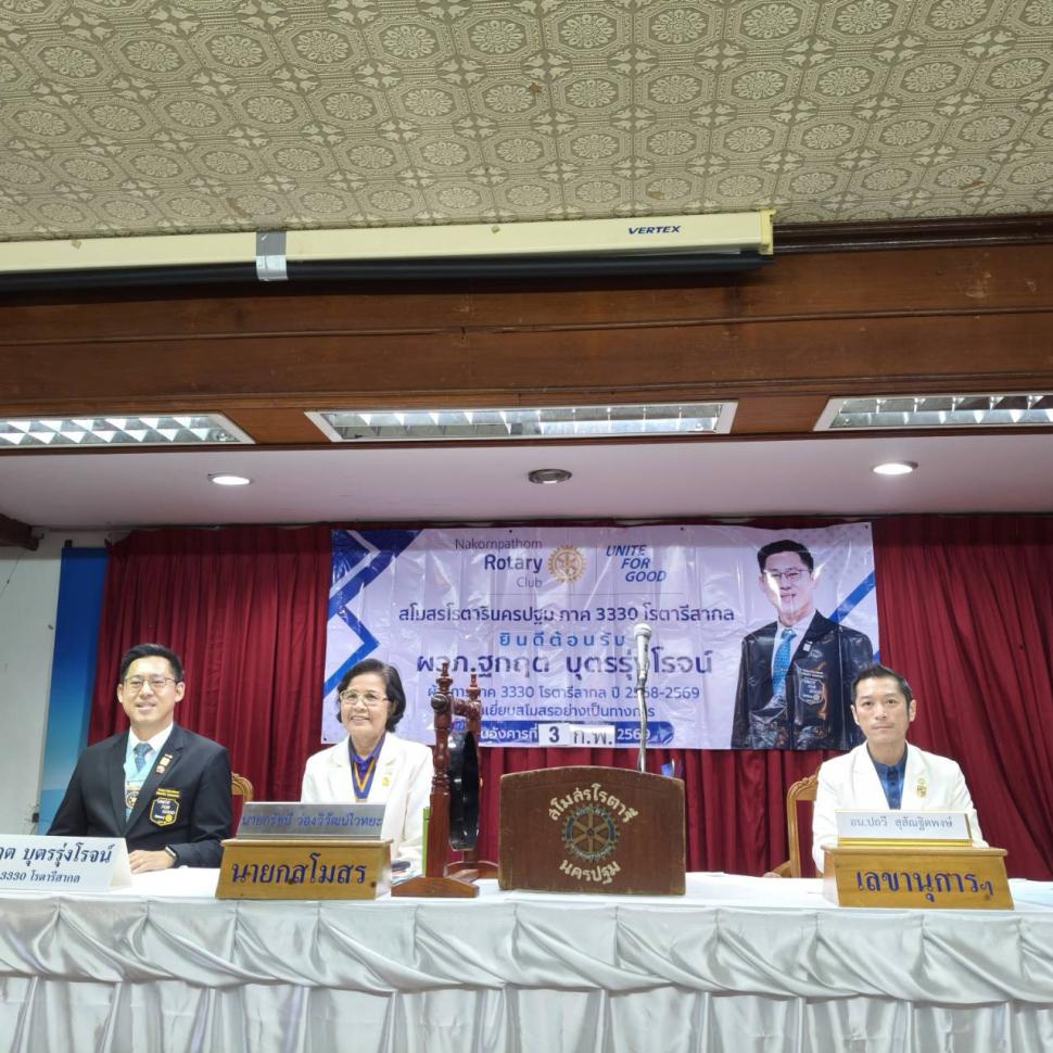 เมื่อวันที่ 3 กุมภาพันธ์ 2569 สโมสรโรตารีนครปฐม โดยการนำของ นย.รัชนี-ผวล.นพ.ชัชวาล ว่องวิวัฒน์ไวทยะ พร้อมด้วยคณะกรรมการ และสมาชิก ให้การต้อนรับ ผวภ.ฐกฤต บุตรรุ่งโรจน์ ผู้ว่าการภาค 3330 โรตารีสากล ในโอกาสเยี่ยมสโมสรอย่างเป็นทางการ มีการประชุมรายงานผลการดำเนินงานและโครงการบำเพ็ญประโยชน์ของสโมสร พร้อมพิธีประดับเข็มรับสมาชิกใหม่ จากนั้นผู้ว่าการภาคได้เยี่ยมชมศูนย์ไตเทียมที่สโมสรดำเนินการเพื่อติดตามการใช้งานและการให้บริการแก่ประชาชนในพื้นที่