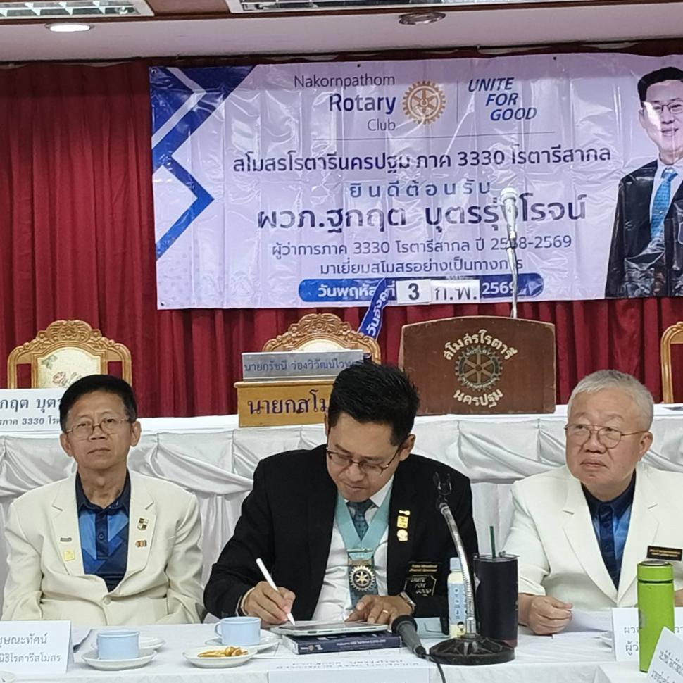 เมื่อวันที่ 3 กุมภาพันธ์ 2569 สโมสรโรตารีนครปฐม โดยการนำของ นย.รัชนี-ผวล.นพ.ชัชวาล ว่องวิวัฒน์ไวทยะ พร้อมด้วยคณะกรรมการ และสมาชิก ให้การต้อนรับ ผวภ.ฐกฤต บุตรรุ่งโรจน์ ผู้ว่าการภาค 3330 โรตารีสากล ในโอกาสเยี่ยมสโมสรอย่างเป็นทางการ มีการประชุมรายงานผลการดำเนินงานและโครงการบำเพ็ญประโยชน์ของสโมสร พร้อมพิธีประดับเข็มรับสมาชิกใหม่ จากนั้นผู้ว่าการภาคได้เยี่ยมชมศูนย์ไตเทียมที่สโมสรดำเนินการเพื่อติดตามการใช้งานและการให้บริการแก่ประชาชนในพื้นที่