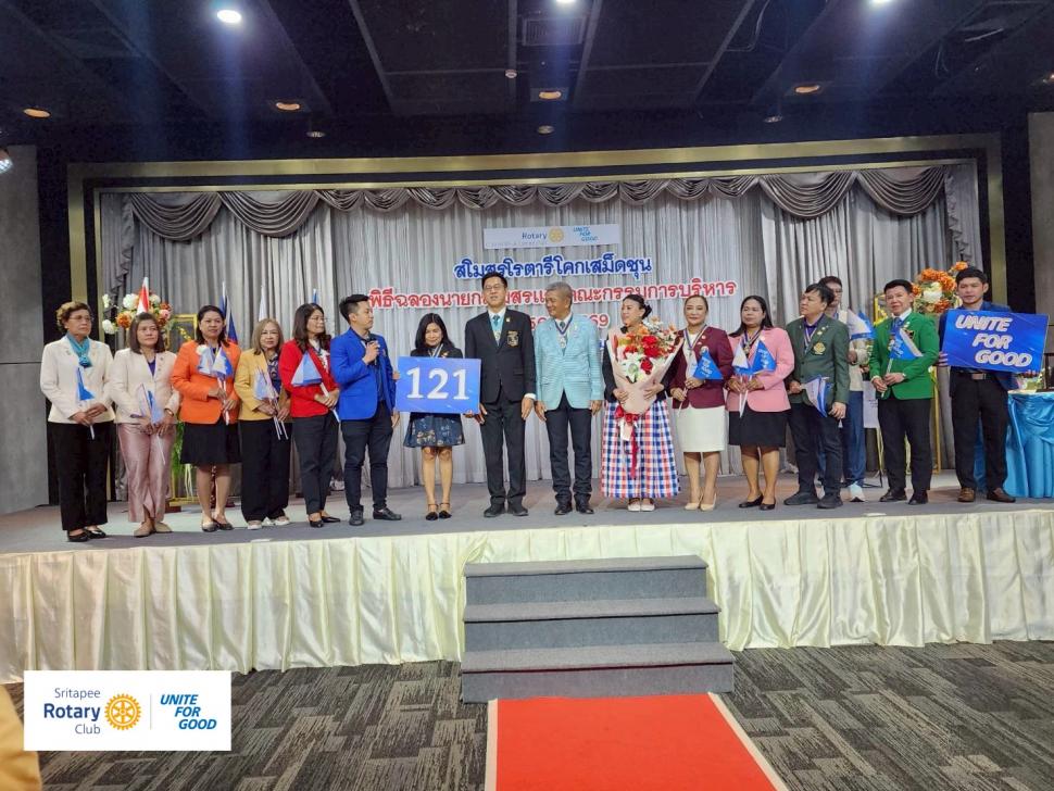 20/7/68-21/768 สโมสรโรตารีศรีตาปี โดยนายกพรทิพย์ แซ่ลิ้มและสมาชิก เข้าร่วมแสดงความยินดีใน พิธีฉลองนายกและคณะกรรมการสโมสรโรตารีโคกเสม็ดชุนและสโมสรโรตารีคอหงส์