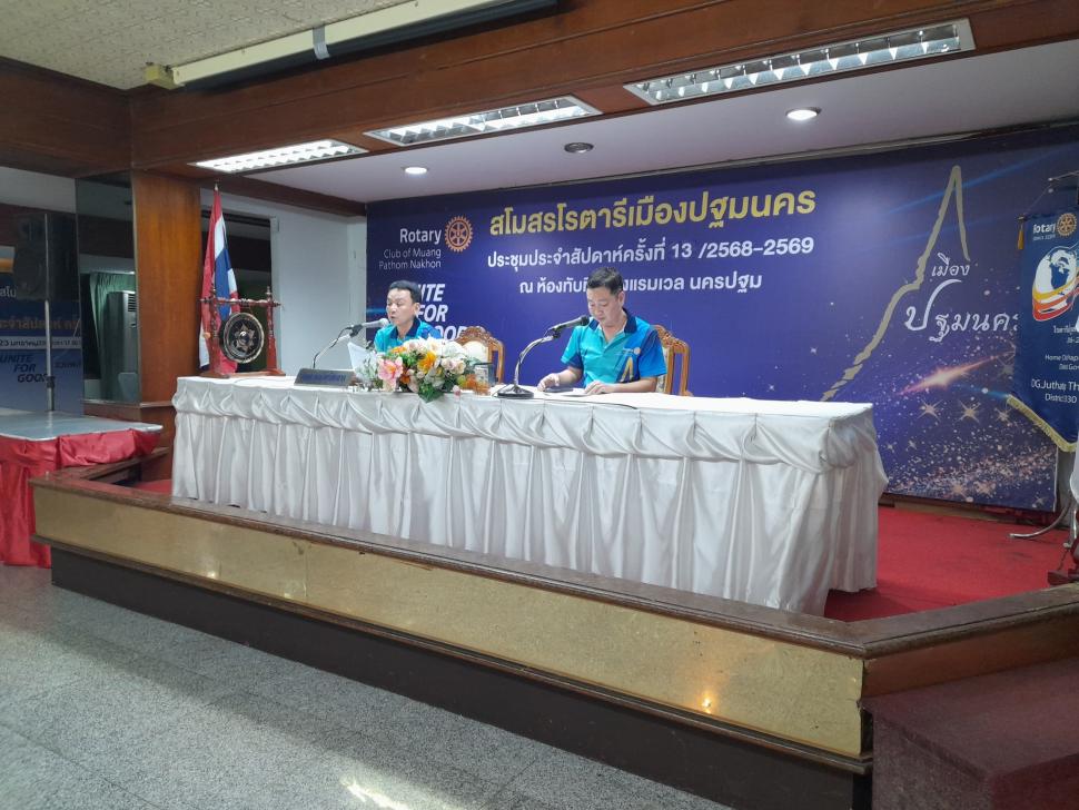 ... สโมสรโรตารีเมืองปฐมนคร ประชุมปกติประจำสัปดาห์ ครั้งที่ 13 ปี 2568-2569 ในวันพฤหัสบดีที่ 12 กุมภาพันธ์ 2569 ณ ห้องทับทิม โรงแรมเวล นครปฐม