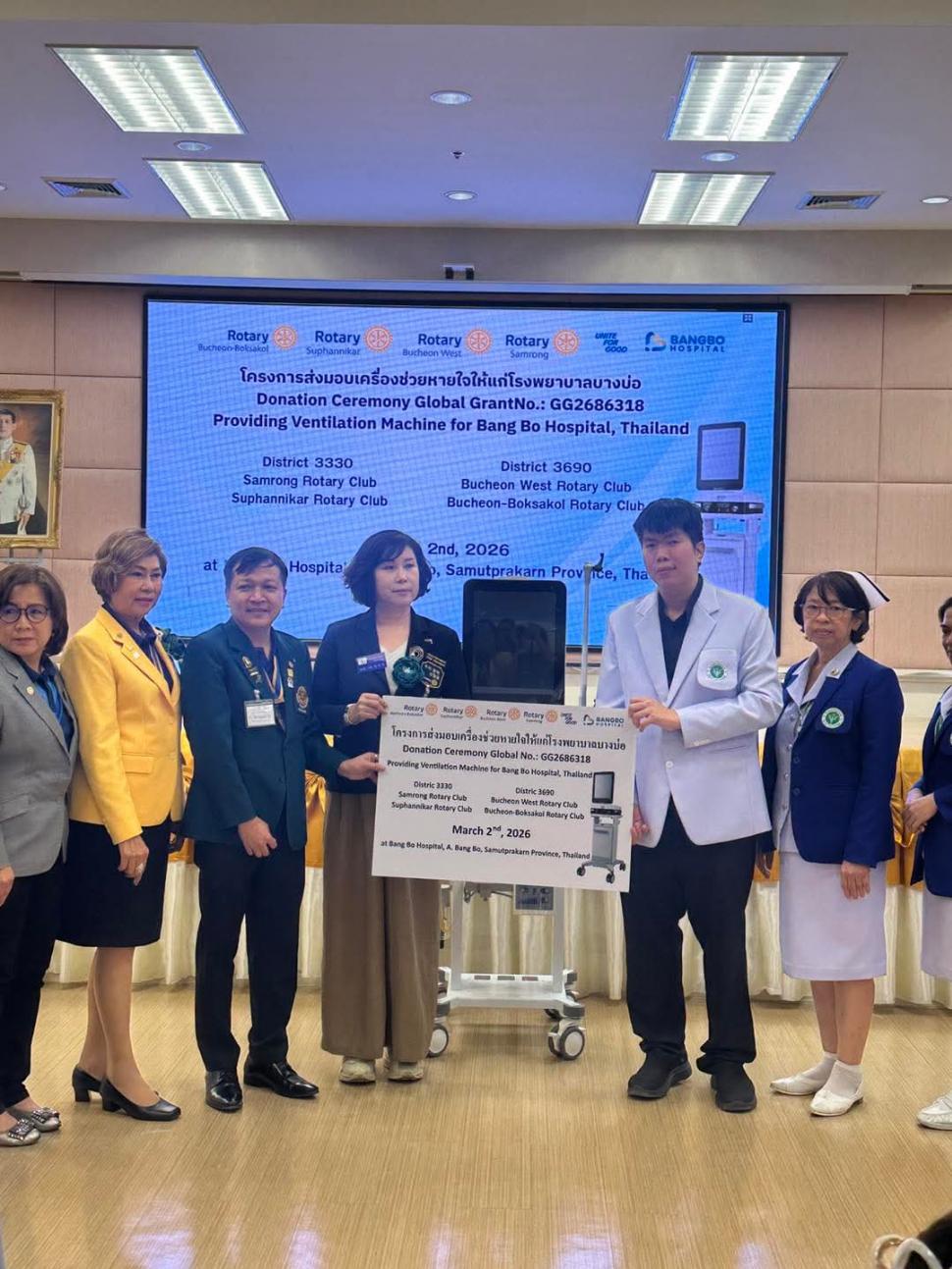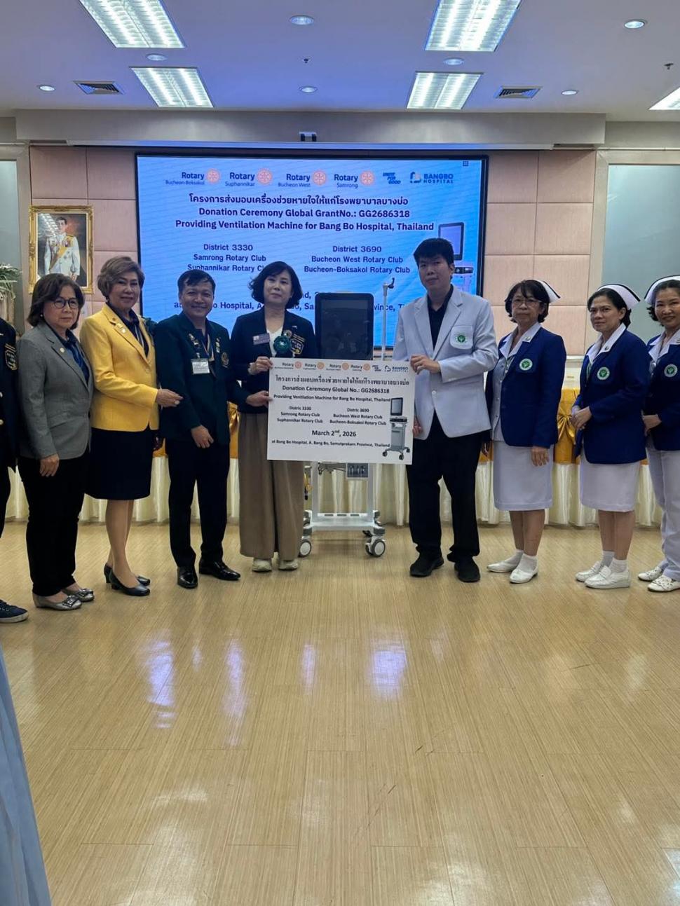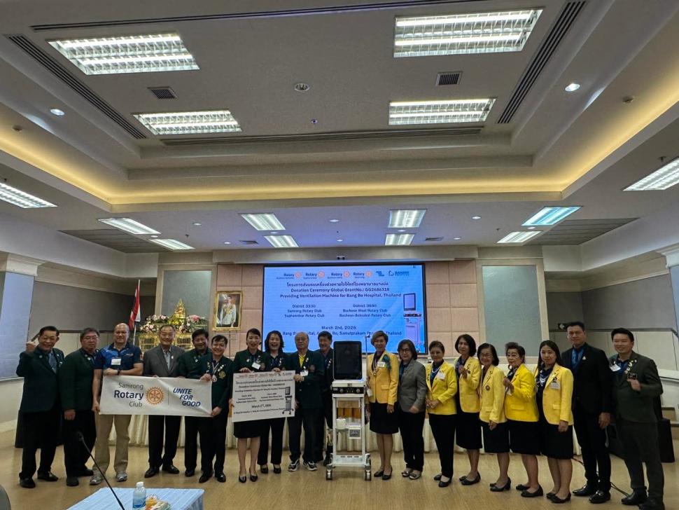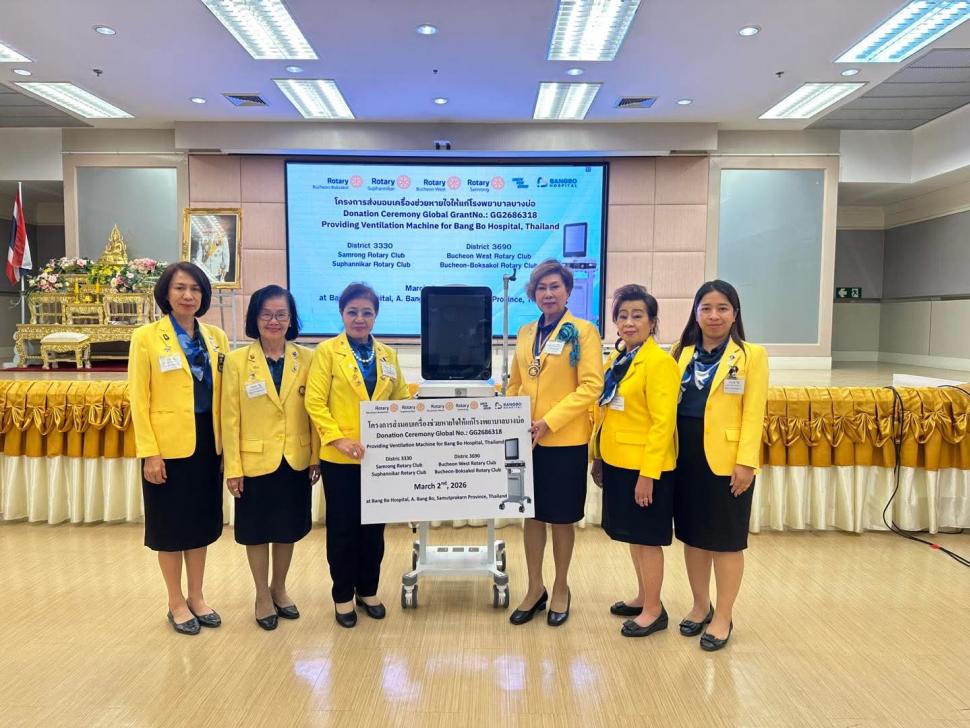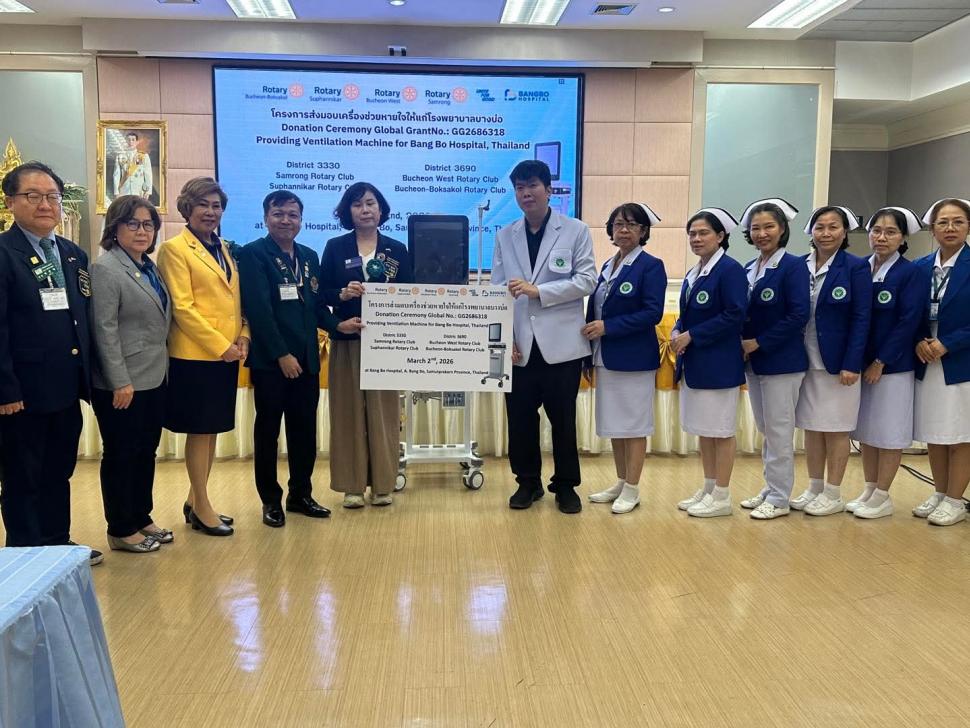 วันที่ 2 มีนาคม 2569 สโมสรโรตารีสุพรรณิการ์ นำโดย นายกปียาพัชร พาเจริญ นยก.ลัดดารัตน์ ตันรัตนวงศ์ พร้อมสมาชิก ร่วมกิจกรรม กับสโมสรโรตารีสำโรง และ Rotary Club of Buchoen West ในโครงการส่งมอบเครื่องช่วยหายใจให้แก่โรงพยาบาล โดยมีคณะผู้บริหารและบุคลากรของโรงพยาบาลร่วมรับมอบ ณ. โรงพยาบาลบางบ่อ อำเภอบางบ่อ จังหวัดสมุทรปราการ