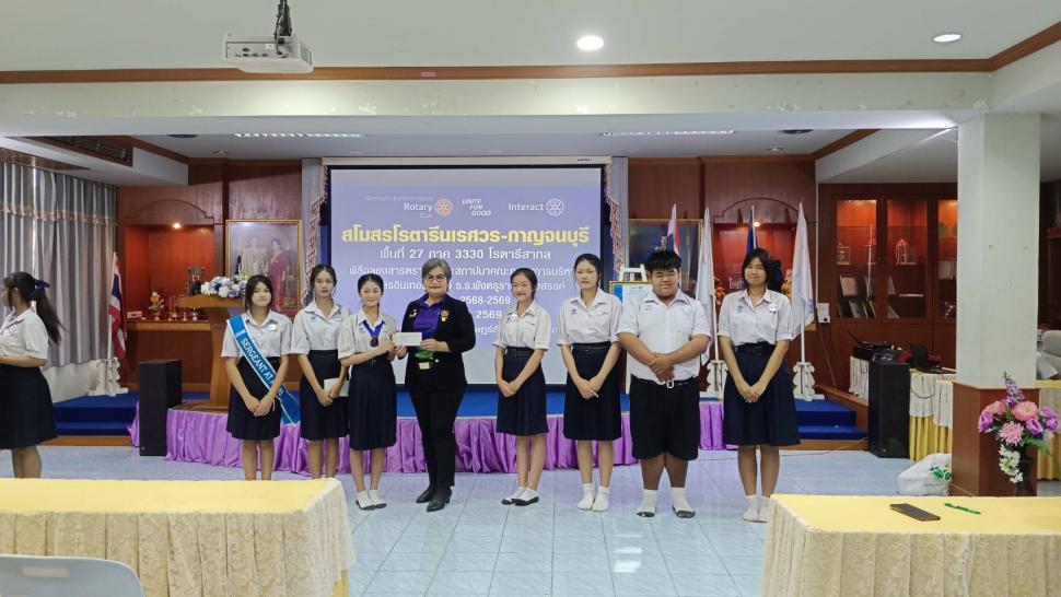 วันที่ 6 มีนาคม 2569 ผู้ใหญ่ใจดีมอบเงินสนับสนุนนักเรียน #พิธีฉลองสารตราตั้งและคณะกรรมการบริหารสโมสรอินเทอร์แรคท์ โรงเรียนพังตรุราษฎร์รังสรรค์ กาญจนบุรี...โดยการอุปถัมภ์ของสโมสรโรตารีนเรศวร-กาญจนบุรี (View:190)