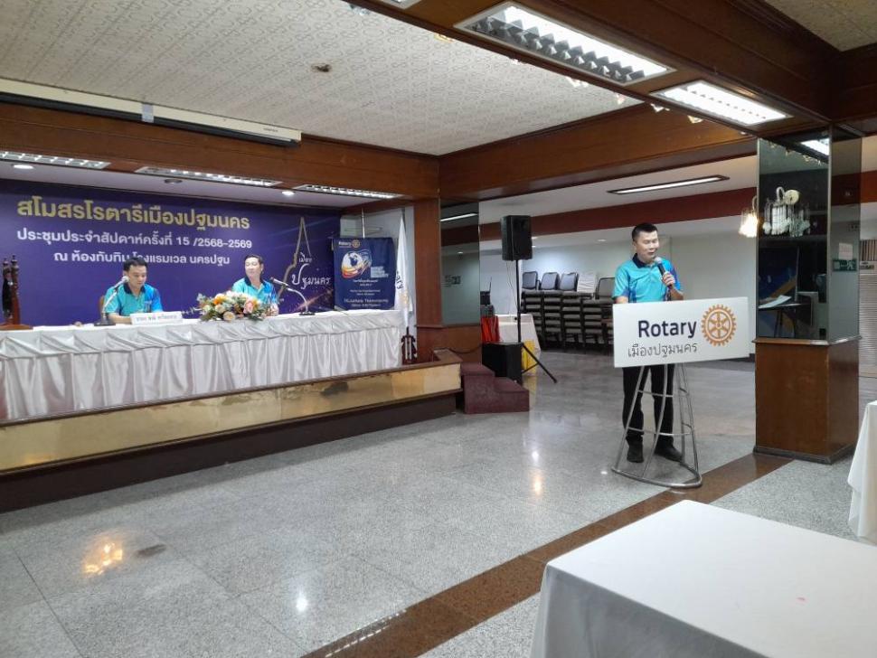... สโมสรโรตารีเมืองปฐมนคร ประชุมปกติประจำสัปดาห์ ครั้งที่ 15 ปี 2568-2569 ในวันพฤหัสบดีที่ 12 มีนาคม 2569 ณ ห้องทับทิม โรงแรมเวล นครปฐม