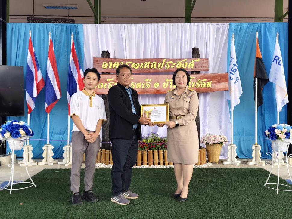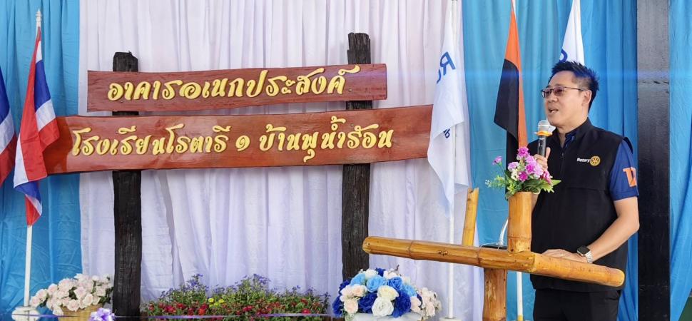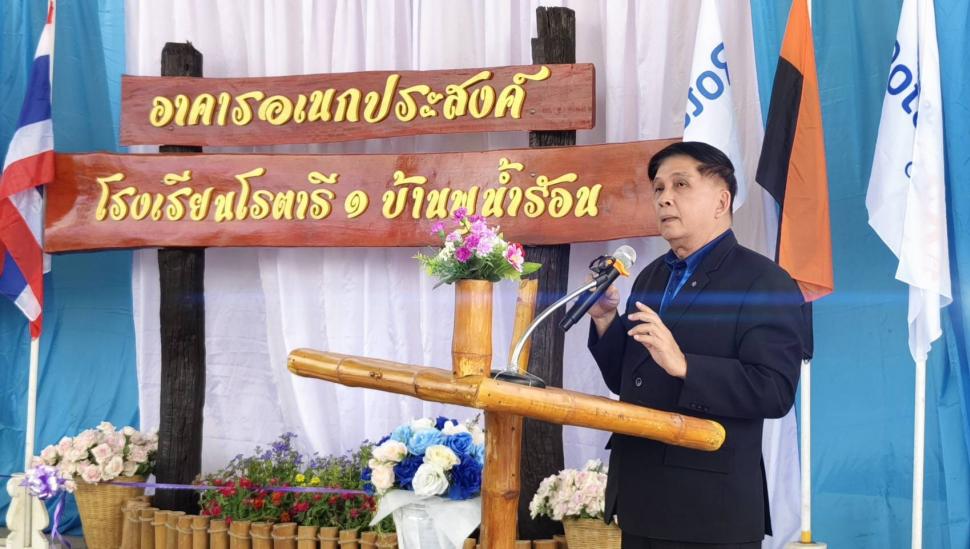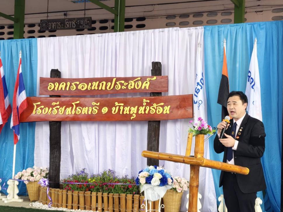 สโมสรโรตารีราชบุรีทำพิธีส่งมอบโดมอเนกประสงค์ให้แก่โรงเรียนโรตารี 1 บ้านพุน้ำร้อน อ.บ้านคา จ.ราชบุรี โดยใช้งบประมาณ 1,000,000 บาท