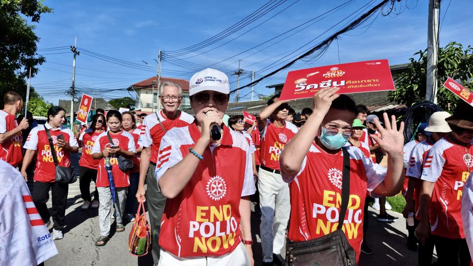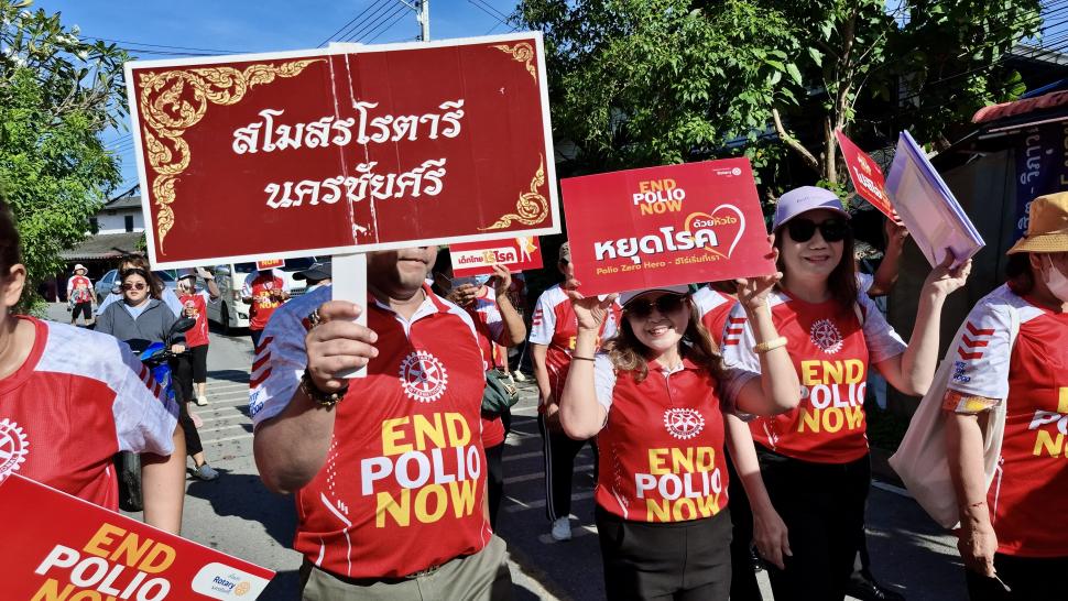 ✓ เดินรณรงค์ถือป้าย End Polio Now ระยะทาง 2–3 กม.