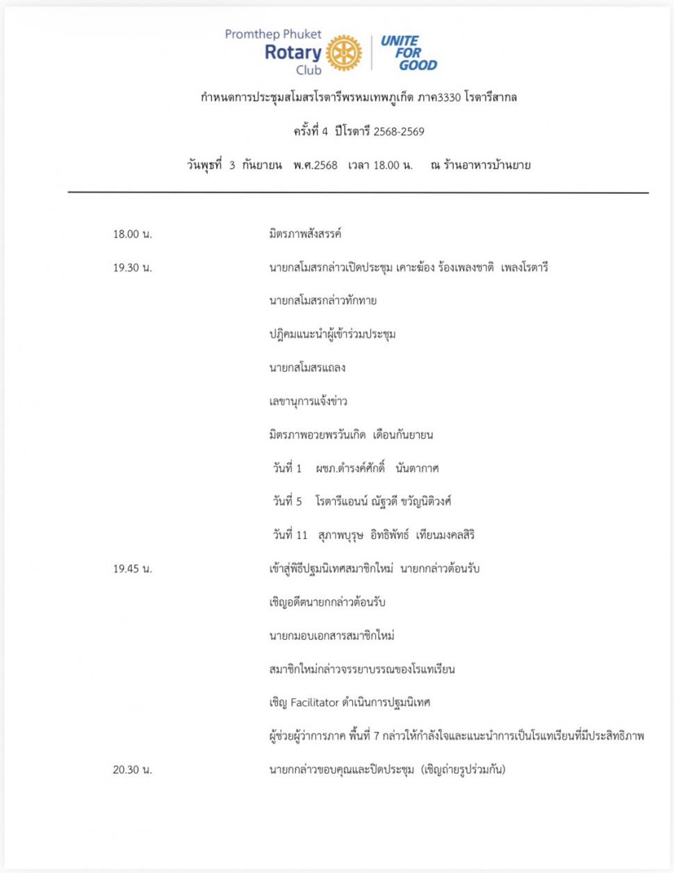 การประชุมสามัญสโมสรโรตารีพรหมเทพภูเก็ต ครั้งที่ 4 ปีโรตารี 2568–2569