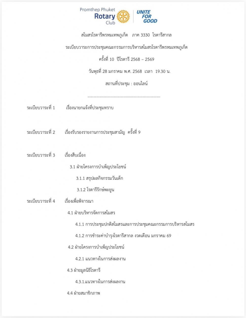 การประชุมคณะกรรมการปีโรตารี 2568-2569 ครั้งที่ 10 (View:304)