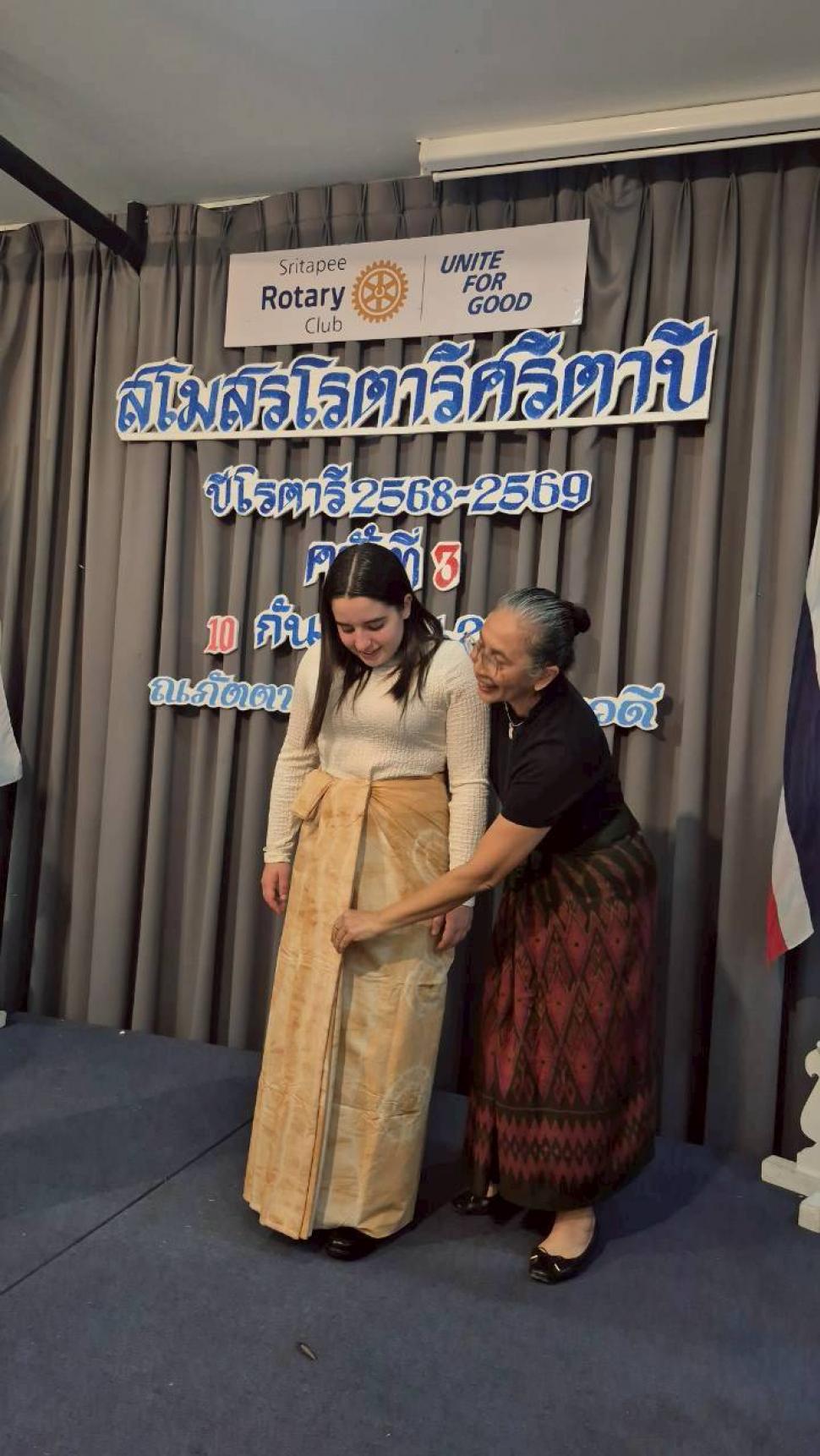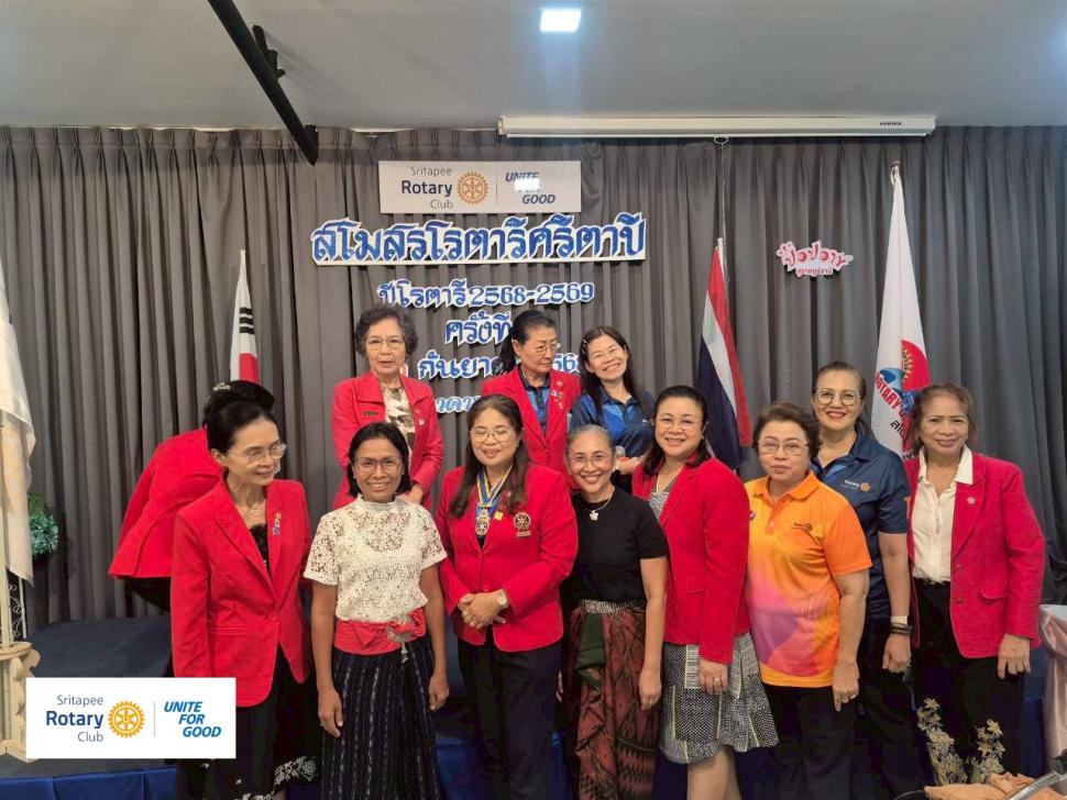 ประชุมประจำสัปดาห์ วันที่10/9/68 นำโดย นย.พรทิพย์ แผซ่ลิ้ม กล่าวทักทายผู้เข้าร่วมประชุม กล่าว ต้อนรับทุกท่านเข้าสู่วาระการประชุม เคาะฆ้อง ครั้งที่ 3 ของปี โรตารี 2568-2569 เชิญวิทยกรแนะนำวิธีนุ่งผ้าไทย (นุ่งผ้าไทยทันสมัยได้เสมอ)