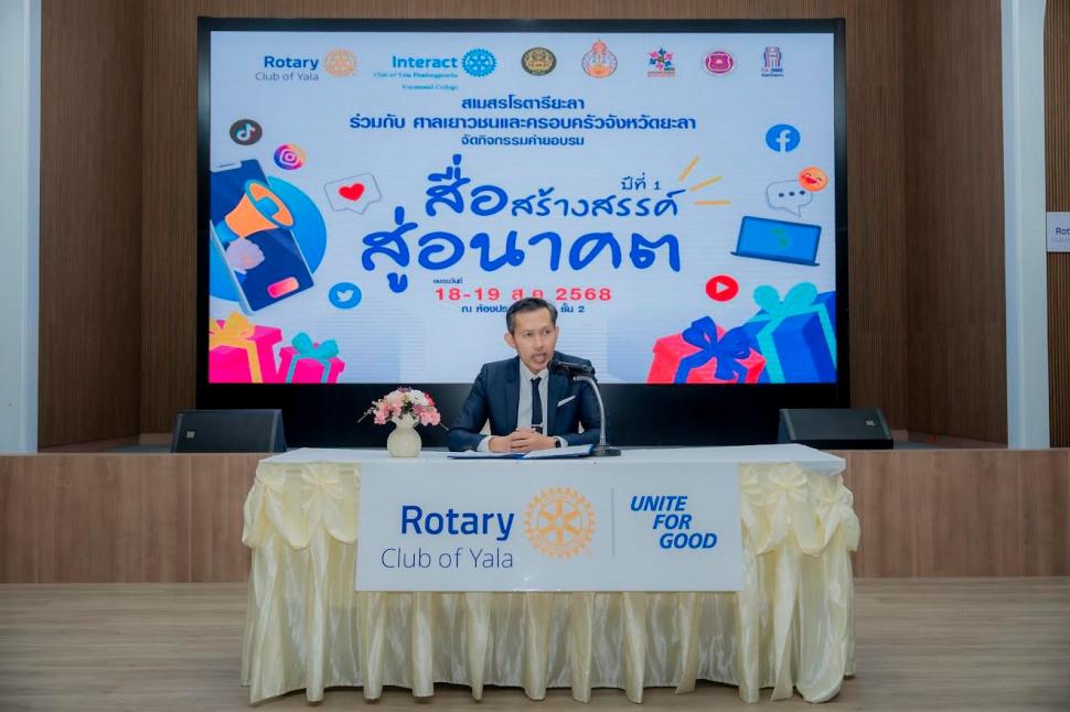 จัดกิจกรรมโครงการ “สื่อสร้างสรรค์...สู่อนาคต” ปีที่1 ครั้งที่ 2 โรตารียะลา วันที่ 18-19 สิงหาคม 2568 ณ หอประชุมเทศบาลยะลา ชั้น 2 เพื่อเสริมทักษะเยาวชนเติบโตรู้เท่าทันสื่ออย่างมีคุณภาพ เป้าหมายของโครงการทำร่วมกับศาลเยาวชนและครอบครัวจังหวัดยะลา ในการการให้ความรู้ เข้าทันสื่อ ไม่ตกเป็นเหยือของออนไลน์โดยไม่รู้เท่าทัน ซึ่งเป็นโครงการต่อเนื่องที่สนับสนุนพัฒนาเด็ก เยาวชน ให้ทันสื่อสมัยใหม่ และเข้าใจทันสื่อโลกออนไลน์
