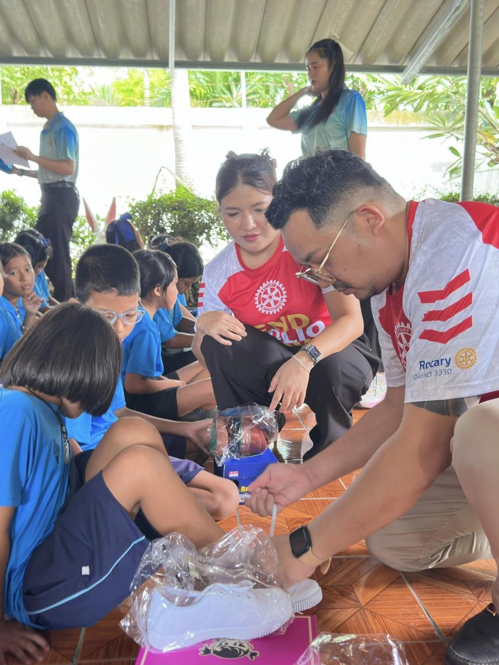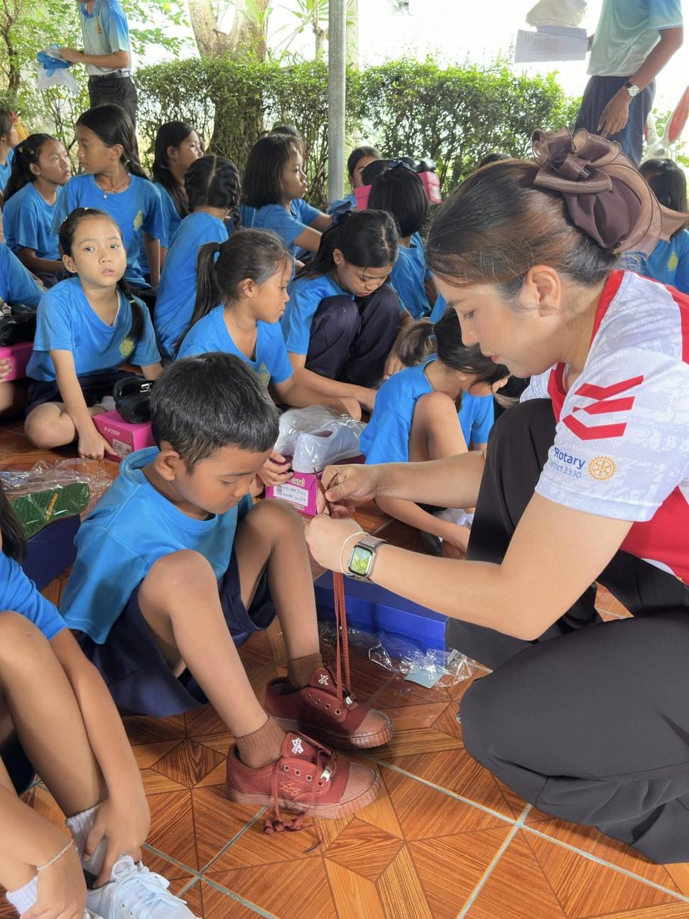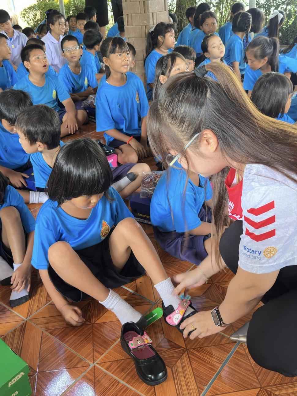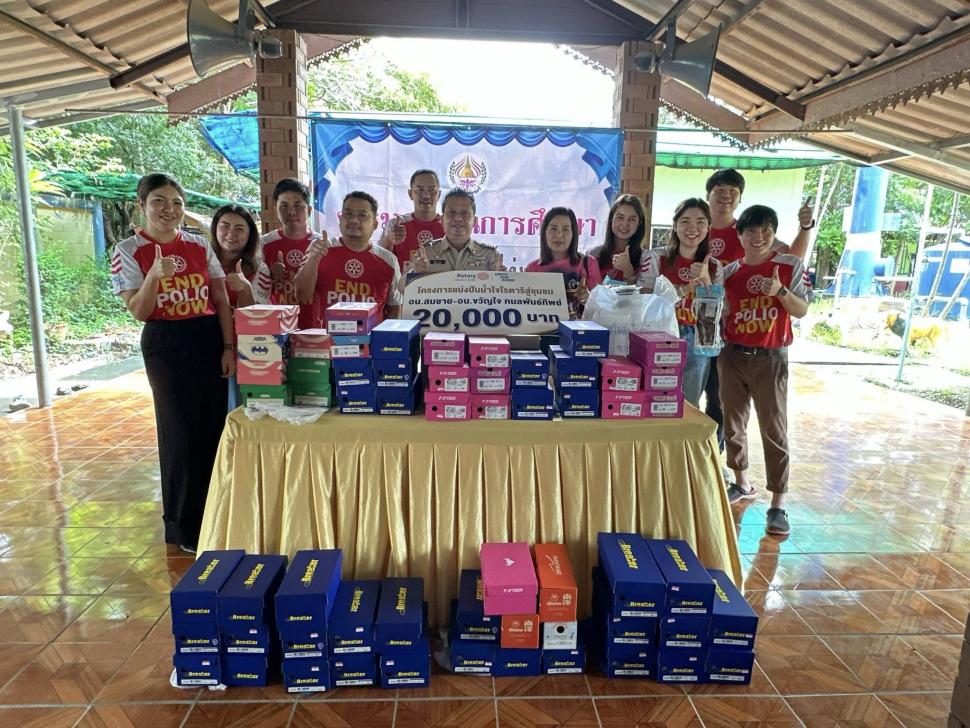 สโมสรโรตารีทวารวดี จัดมอบรองเท้านักเรียน 60คู่ ถุงเท้า 72 คู่ เพื่อฉลองครบรอบ 9 ปีสโมสรโรตารีทวารวดี