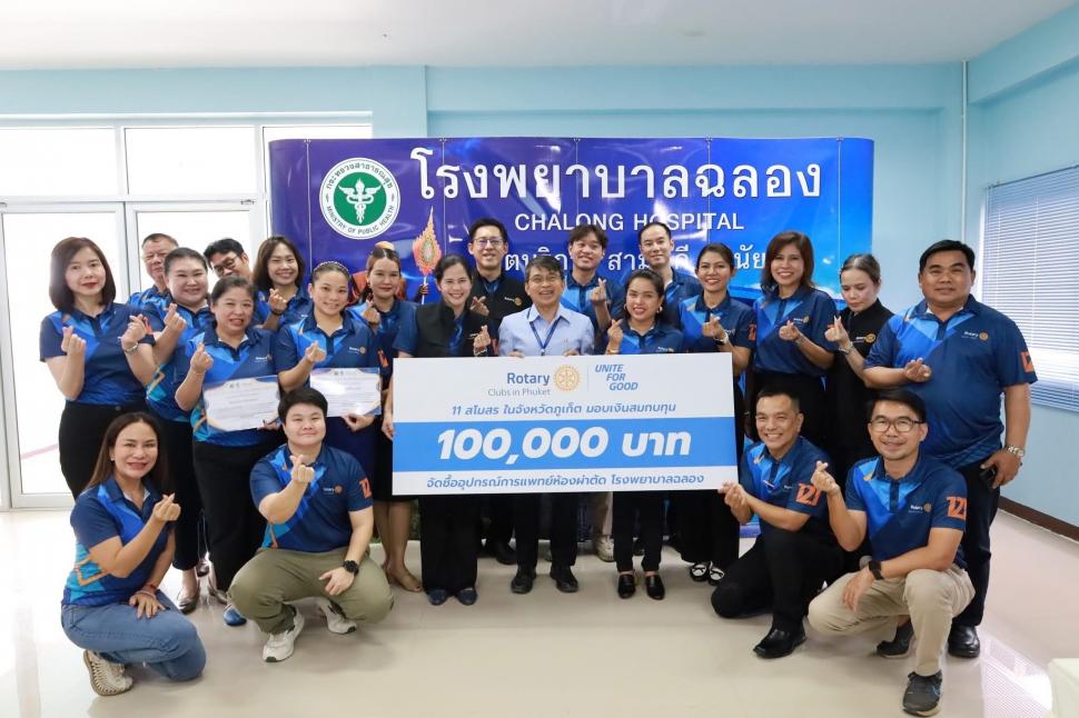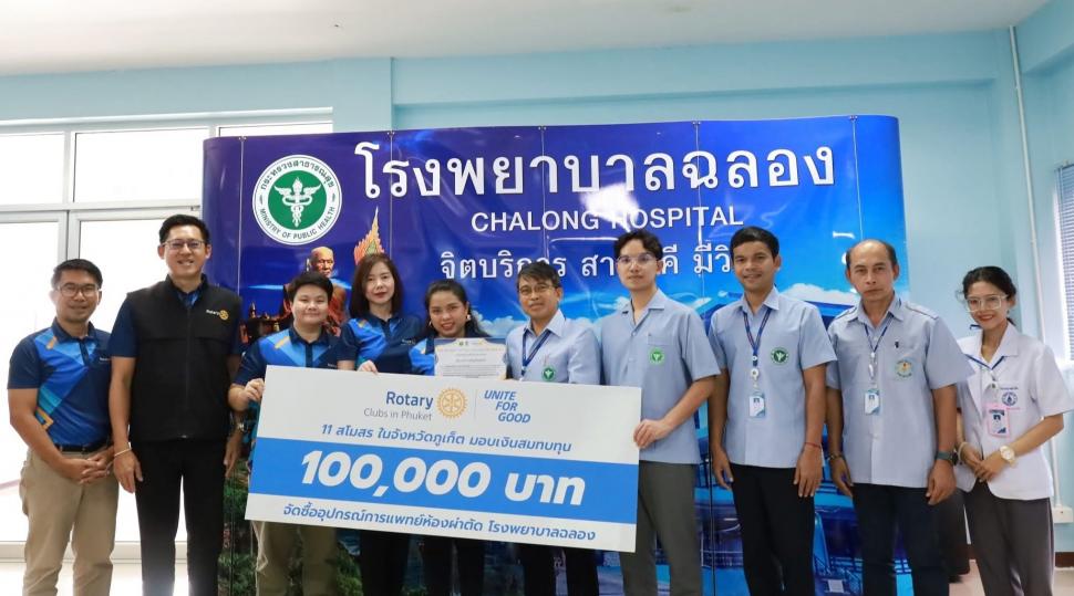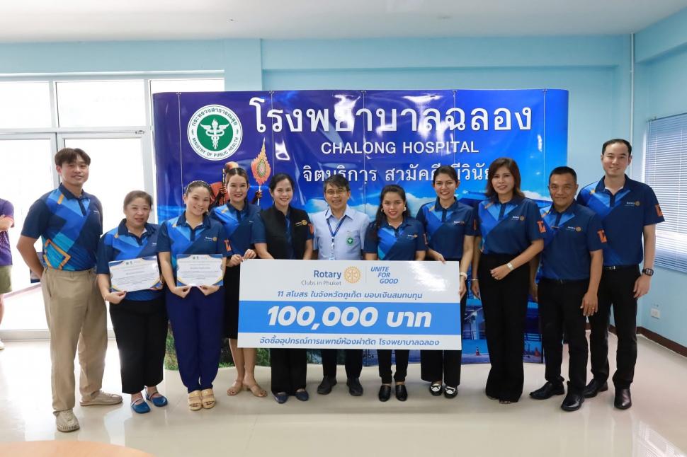 มอบเงินบริจาค 100,000 บาท จากการจัดงานคอนเสิร์ตการกุศล “รวมพลังเพื่อสิ่งดี Unite for Good” เพื่อระดมทุนจัดซื้อเครื่องมือแพทย์สำหรับห้องผ่าตัดใหม่ของโรงพยาบาลฉลลอง ตำบลฉลอง อำเภอเมืองภูเก็ต จังหวัดภูเก็ต