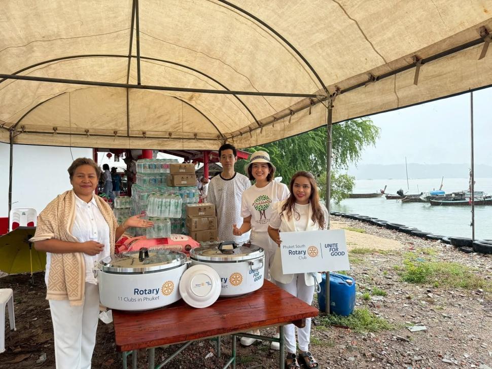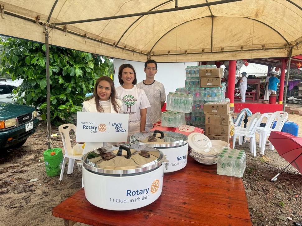 วันที่ 20 ตุลาคม 2568 นายกพัชราพร อุทกเสน พร้อมด้วยสมาชิกสโมสร ร่วมกับ 10 สโมสรโรตารีในจังหวัดภูเก็ต ร่วมบริจาคถ้วย ชาม น้ำดื่ม ข้าวสาร และหม้อหุงข้าวให้แก่ศาลเจ้าม๊าจ้อโป๋ และศาลเจ้ากะทู้ เนื่องในเทศกาลถือศีลกินผัก จังหวัดภูเก็ต
