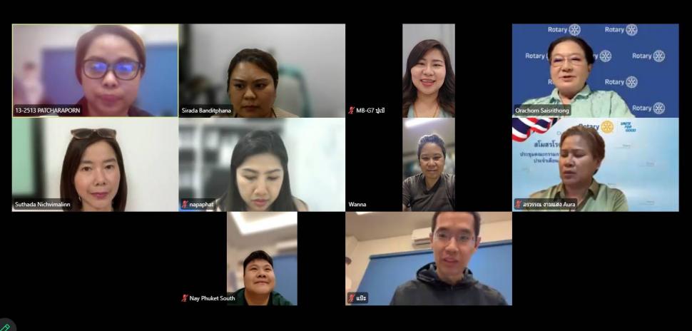 สโมสรโรตารีภูเก็ตเซ่้าท์จัดประชุมสโมสรประจำสัปดาห์ แบบออนไลน์ เพื่อสรุปขั้นตอนการจัดงาน DC และนายกรับเลือกอรวรรณ งามแสง แสดงวิสัยทัศน์สำหรับปีบริหาร 2569-2570