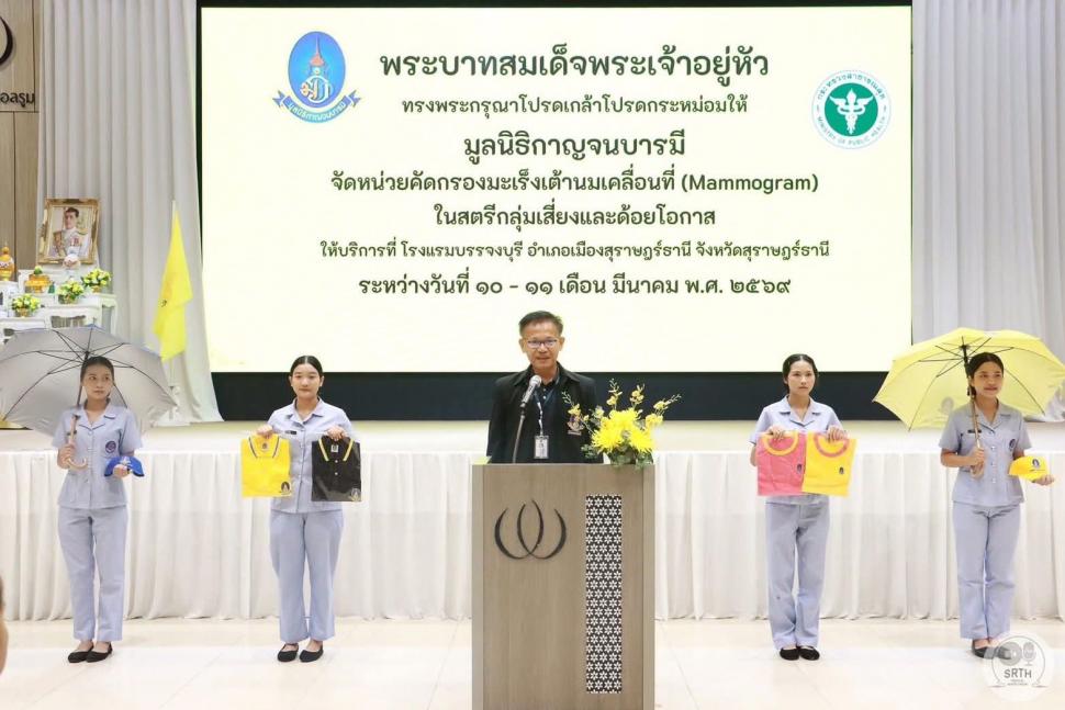 สโมสรโรตารีศรีตาปี นำโดย นายกพรทิพย์ แช่ลิ้ม เข้าร่วมกิจกรรมโครงการรู้เร็ว ตรวจคัดกรองไว ปลอดภัยจากโรคมะเร็ง เครือข่ายบริการสุขภาพอำเภอเมืองสุราษฎร์ธานี ปีงบประมาณ 2569 โดยจัดทำร่วมกับมูลนิธิกาญจนบารมี การคัดกรองมะเร็งเต้านมโดยเครื่องเอกซเรย์เต้านมเคลื่อนที่ (Mammogram) ในสตรีกลุ่มเสี่ยงและด้อยโอกาส 4 หน่วย 4 ภาคทั่วประเทศ เพื่อเฉลิมพระเกียรติพระบาทสมเด็จพระเจ้าอยู่หัว เนื่องในโอกาสพระราชพิธีมหามงคล เฉลิมพระชนมพรรษา 6 รอบ 28 กรกฎาคม 2567 ระหว่างวันที่ 10-11 มีนาคม 2569 เวลา 08.00-16.00 น. โดยมีนายวิทศักดิ์ จำเริญนุสิต รองผู้ว่าราชการจังหวัดสุราษฎร์ธานี เป็นประธานพิธี ณ ห้องแกรนด์บอลรูม 2 โรงแรมบรรจงบุรี จังหวัดสุราษฎร์ธานี #PeopleOfAction #RotaryDistrict3330 #UNITEFORGOOD #121โรตารีรวมพลังเพื่อสิ่งดี