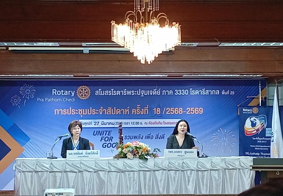 27 มีค.69 สโมสรโรตารีพระปฐมเจดีย์ประชุมประจำสัปดาห์ครั้งที่ 18/2568-2569 12.00 น. รับประทานอาหาร 12.45 น. นายกฯกล่าวเปิดประชุม -เคาะฆ้อง ร้องเพลงชาติ -ปฏิคมแนะนำแขก -นายกฯแจ้งกิจกรรม -เลขานุการแจ้งข่าวสาร -แชร์การเข้าร่วมอบรมนายกรับเลือก ปี 2569-2570 โดย นยล.กิรณา ปิติศศิกร นายกรับเลือกสโมสรฯ 13.45 น -ปิดประชุม/ถ่ายภาพร่วมกัน
