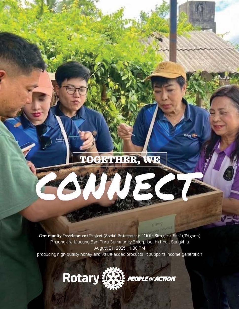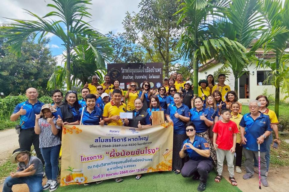 ทั้งนี้สโมสรโรตารีหาดใหญ่ได้มอบเงินสนับสนุนเพื่อจัดซื้อเครื่องปิดฝากระป๋องให้กับวิสาหกิจชุมชนผึ้งจิ๋วเมืองบ้านพรุ