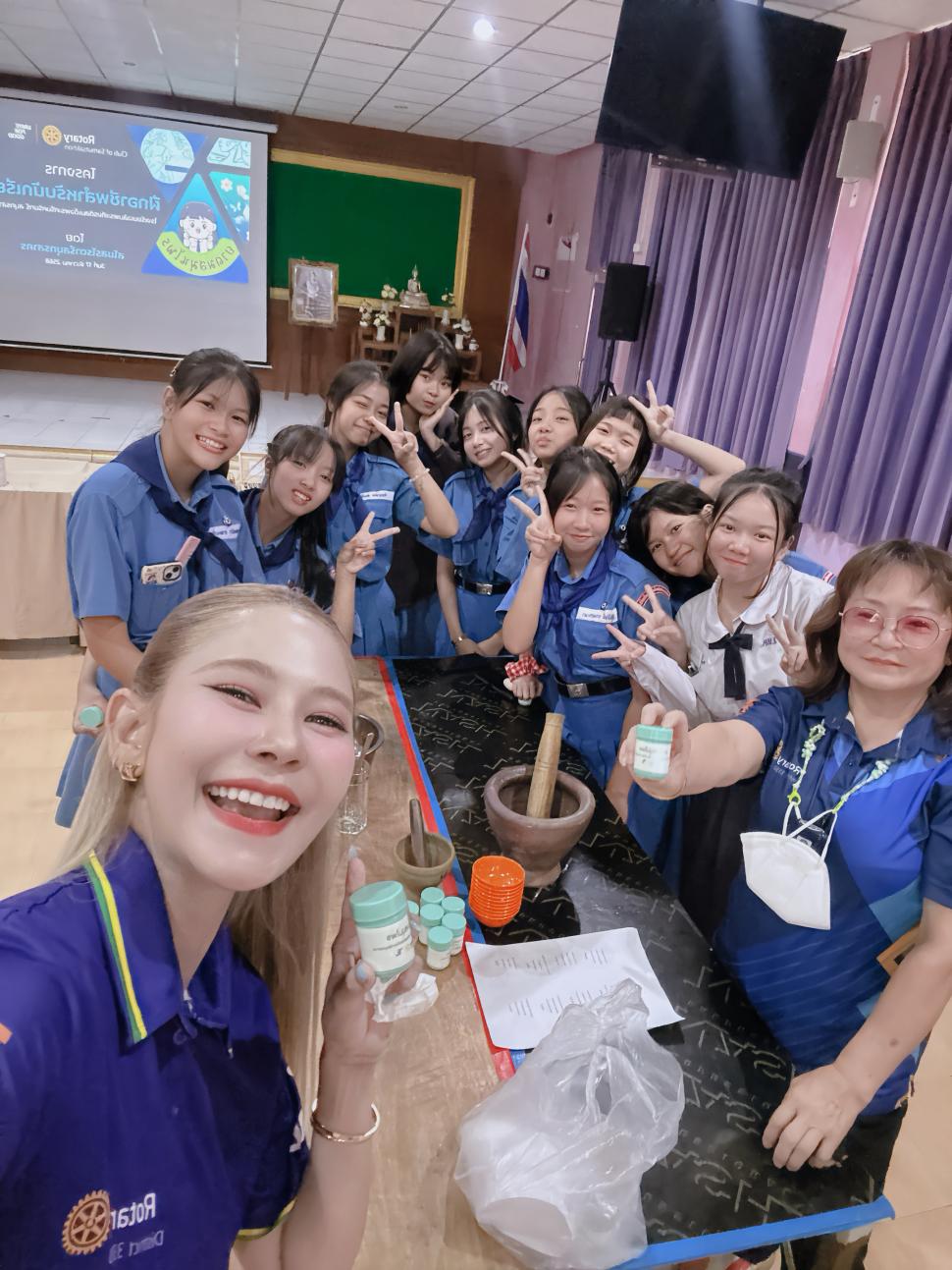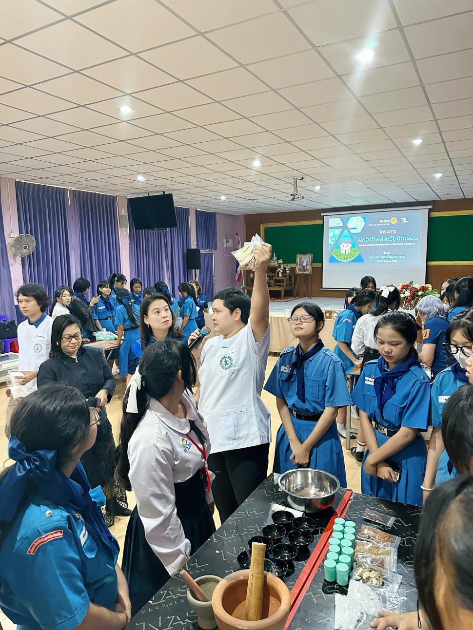 วันที่ 17ธันวาคม 2568 นำโดย นายกสุภาภรณ์ พัวพันธ์ พร้อมด้วยสมาชิก โครงการฝึกอาชีพนักเรียนทำยาดมสมุนไพรและน้ำมันนวดสมุนไพร ณ โรงเรียนเฉลิมพระเกียรติสมเด็จพระศรีนครินทร์สมุทรสาคร (View:31)