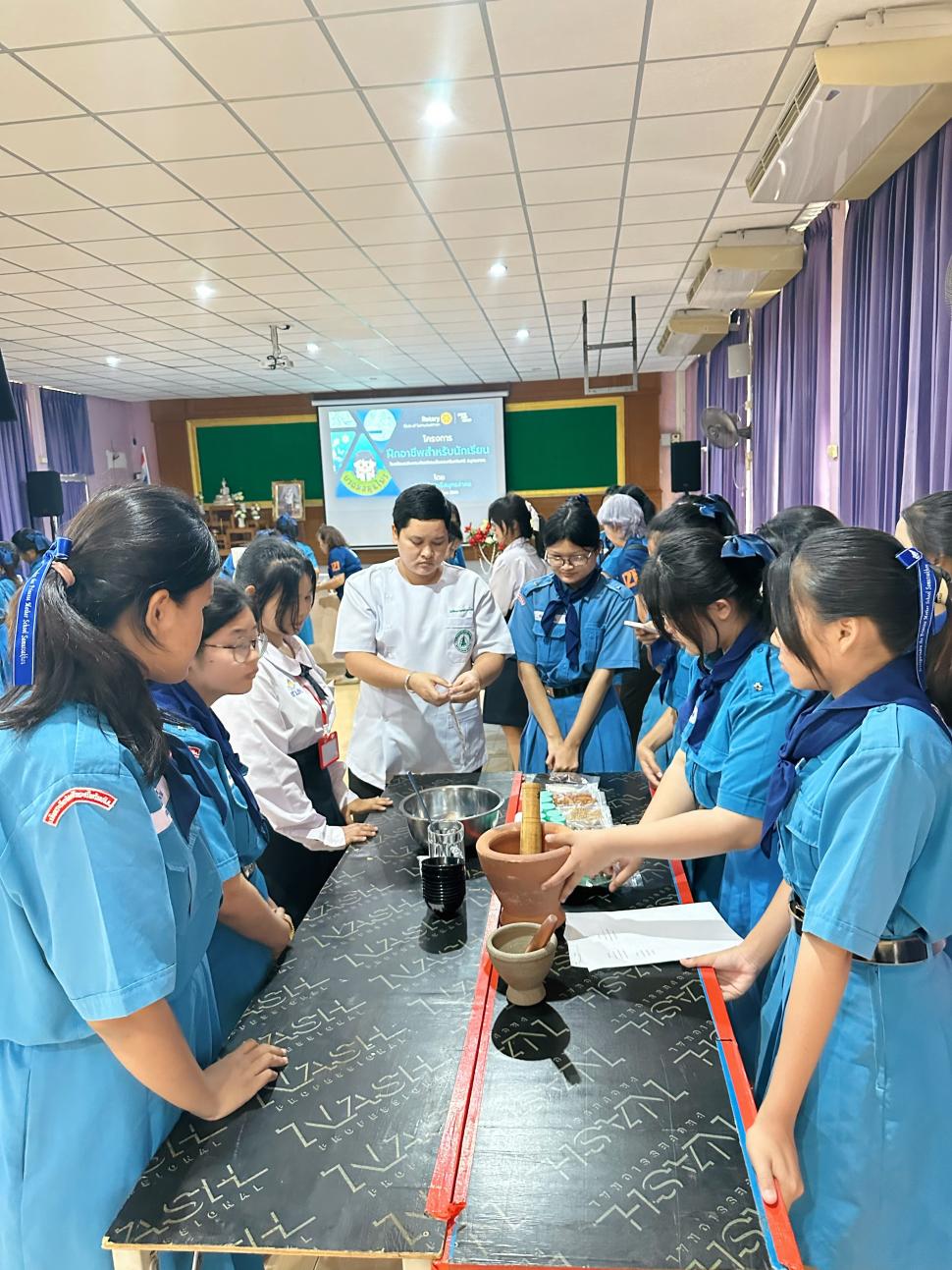 โครงการฝึกอาชีพนักเรียนทำยาดมสมุนไพรและน้ำมันนวดสมุนไพร