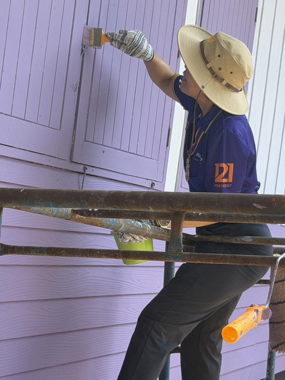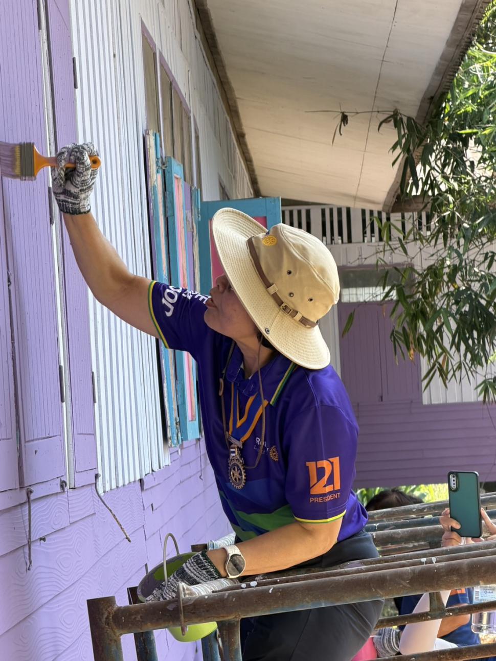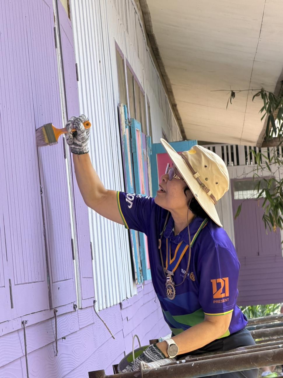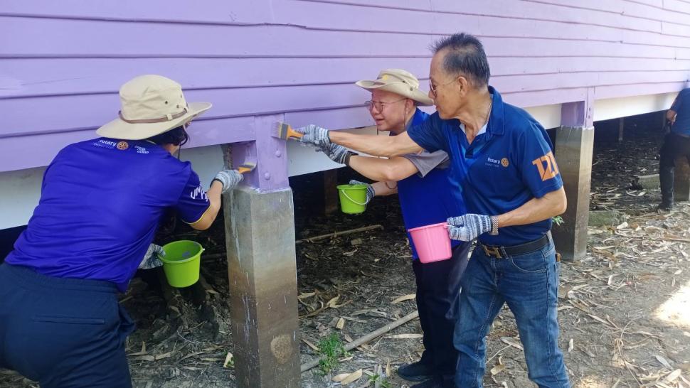 นย.รัชนี และ ผวล.นพ.ชัชวาล ว่องวิวัฒน์ไวทยะ พร้อมด้วยสมาชิกและโรตารีแอนน์ ร่วมแรงร่วมใจกันทาสีอาคารเรียนให้กับโรงเรียนวัดลาดสะแก อำเภอบางเลน จังหวัดนครปฐม