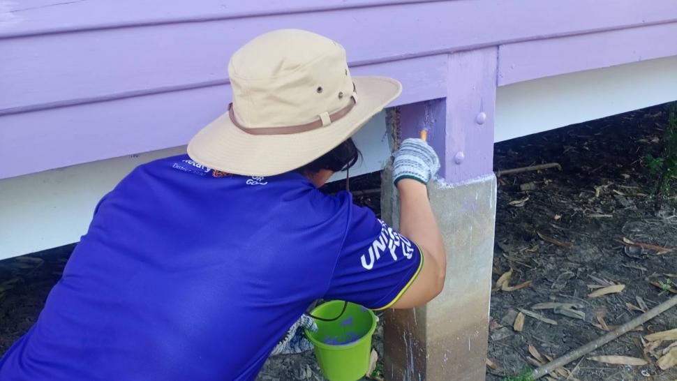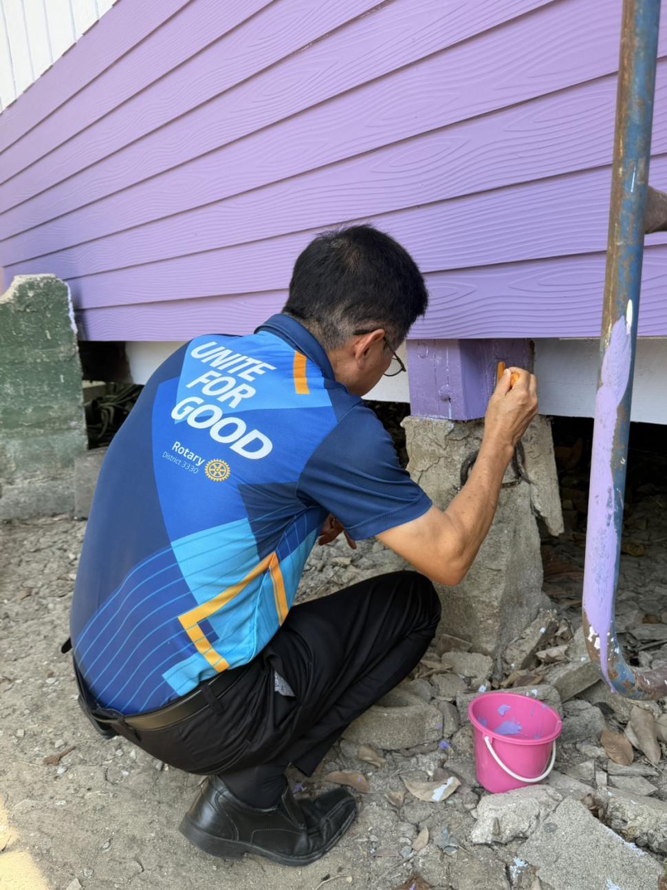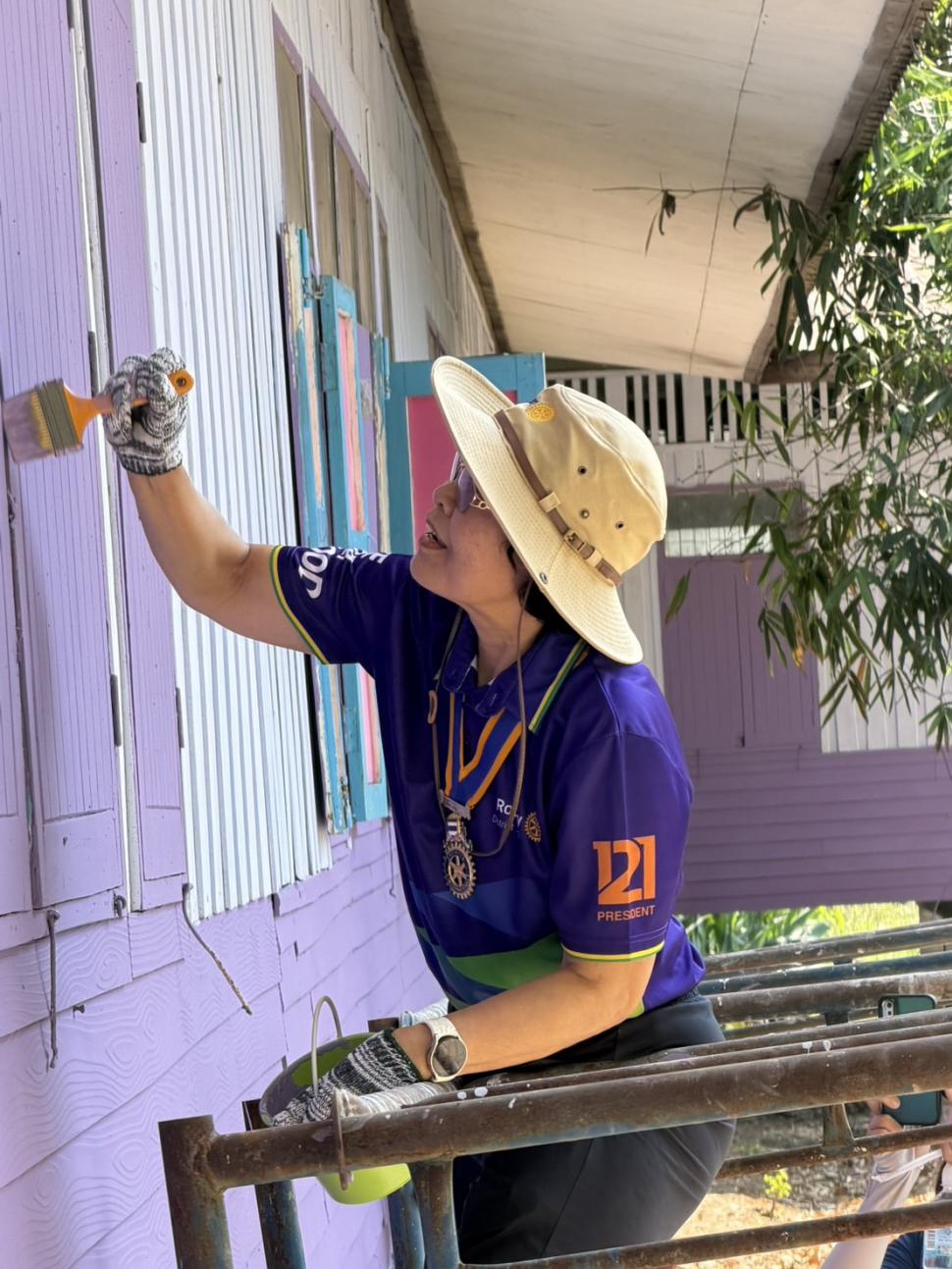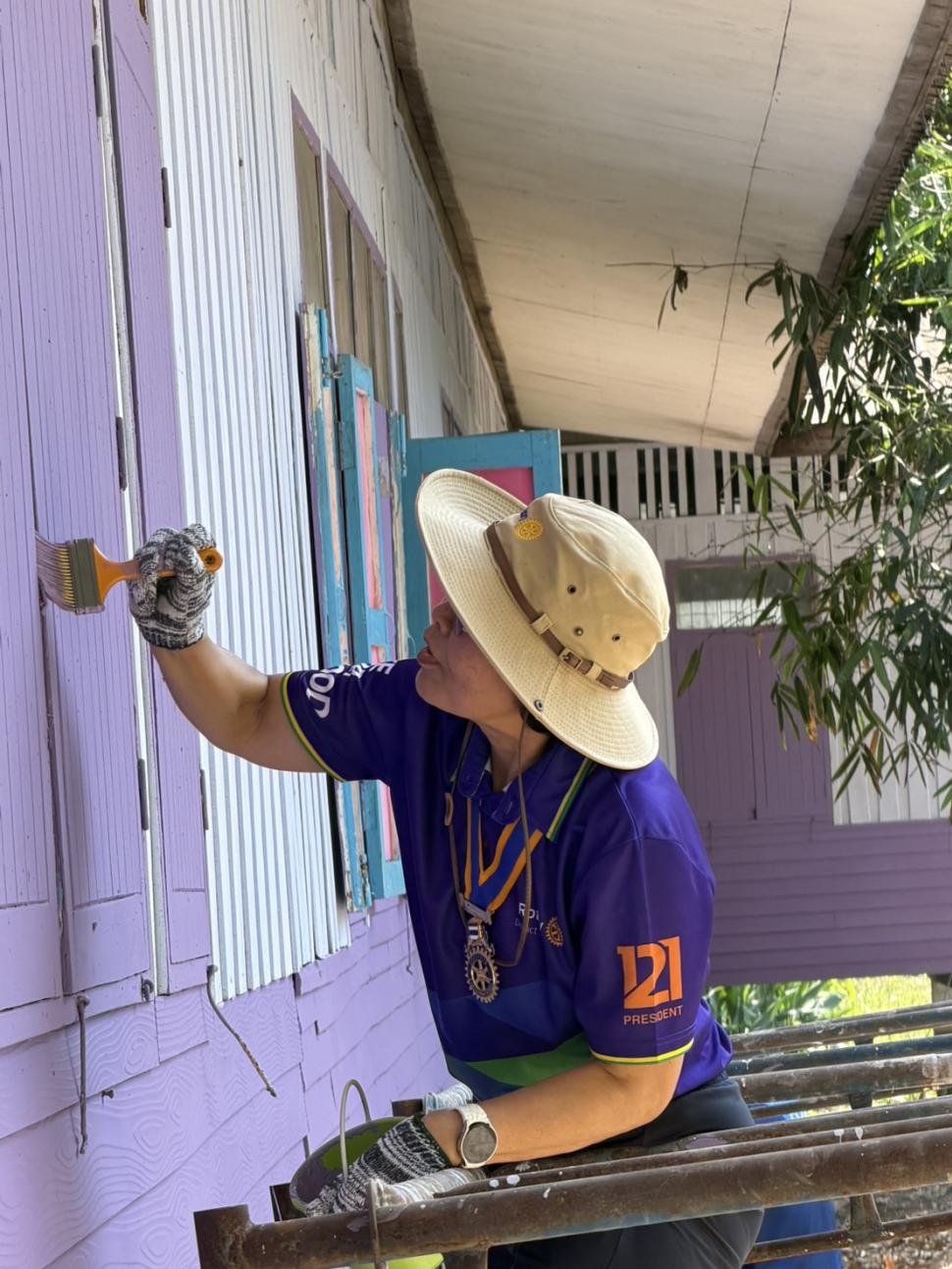 นย.รัชนี และ ผวล.นพ.ชัชวาล ว่องวิวัฒน์ไวทยะ พร้อมด้วยสมาชิกและโรตารีแอนน์ ร่วมแรงร่วมใจกันทาสีอาคารเรียนให้กับโรงเรียนวัดลาดสะแก อำเภอบางเลน จังหวัดนครปฐม